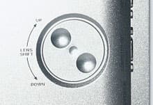 Наиболее интересная функциональная особенность — сдвиг центра проекции от оси проектора вверх, так, что низ изображения практически совпадает с плоскостью проектора, при этом без трапецеидальных искажений. При вращении поворотного круга по часовой стрелке изображение смещается вверх (объектив при этом смещается вертикально вверх), а против часовой — вниз. Таким образом, можно, не выдвигая переднюю ножку-подставку, отрегулировать положение изображения на экране, а при использовании ножки поворотным кругом можно легко чуть приподнять или опустить изображение.
