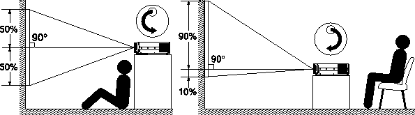 Объектив короткофокусный, поэтому проектор, даже находящийся близко к экрану, дает большое изображение. Взаимосвязь расстояния между объективом и экраном и размером проецируемого изображения отражена в таблице: