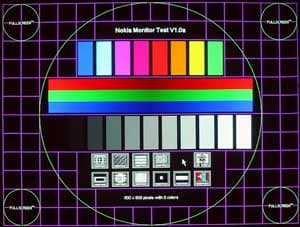 В процессе пока еще не долгой эксплуатации проектор подключался к настольным компьютерам и ноутбукам различных моделей. Никаких проблем с совместимостью не выявлено. Проектор с точки зрения компьютера является Plug-and-play монитором, поэтому иногда появляется соответствующее сообщение. В ответ на него можно подсунуть CD-ROM с inf-файлом, где описаны рабочие разрешения, а можно и проигнорировать. Тестирование качества изображения проводилось на компьютере под управлением Windows XP Professional программой Nokia Monitor Test при подключении к видеокарте SUMA Platinum Geforce2 MX 400 комплектным кабелем. Проектор достаточно хорошо интерполирует разрешения большие или меньшие, чем родные 800 на 600, но, разумеется, рекомендуется перевести видеоадаптер в это разрешение, особенно если не используется коррекция трапецеидальных искажений — только в этом случае качество будет максимальным. Итак, установлено разрешение 800 на 600 (16 млн. цветов) и запущен Monitor Nokia Test: