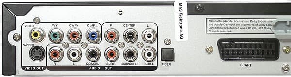 Плеер имеет весьма широкий спектр возможностей для подключений к устройствам отображения. Доступны: композитное и RGB-подключение через SCART, S-Video подключение через S-Video разъем, композитное и YCbCr через отдельные RCA разъёмы. Переключение между RGB, S-Video и композитным выходом производится через экранное меню.