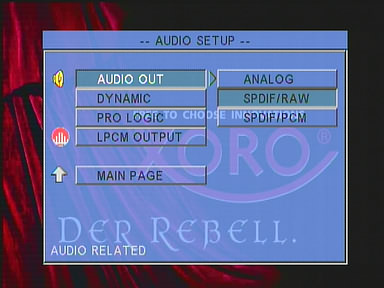 В меню аудио параметров можно выбрать между аналоговым и цифровым выходом, установить LPCM 48 или 96 кГц.