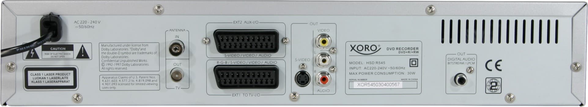 Под невзрачной внешностью DVD-рекордера XORO HSD R545 прячется функциональный и достаточно удобный аппарат для записи видео на DVD+R/RW, как от внешних источников (включая DV-камеры), так и со встроенного тюнера, принимающего NICAM-стереозвук. Другие возможности рекордера — проигрывание DVD-Video, CD-DA и mp3 — реализованы довольно примитивным образом, wma- и jpg-файлы рекордер не понимает вовсе.