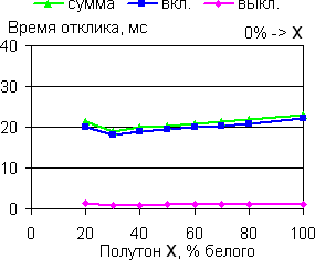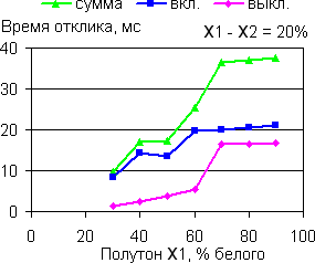 | Времена отклика при переходе между полутонами с разницей 20%. | |