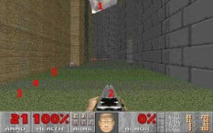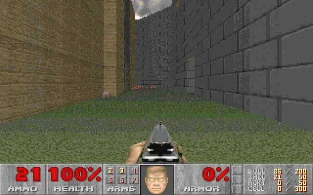 Самым главным является инвариант Присутствия [2]. В реальном мире — кончик носа. Он всегда занимает одну и ту же часть поля зрения. Движения видимого мира воспринимаются относительно этого расплывчатого пятна. В DOOM его роль выполняет конец ствола. Как только психика принимает его как инвариант, игрок попадает в мир First Person Shooter (FPS).