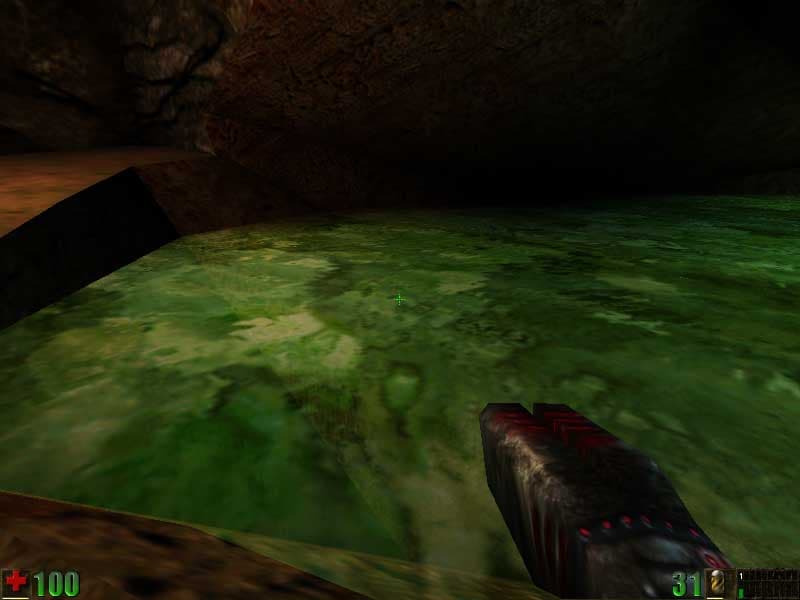 Смена воздушной стихии на водную раньше тоже обозначалась только цветом (скорее, сине-зеленым оттенком). Вероятно, одно из самых эргономичных решений — Unreal. Затем к цвету добавились движения поля зрения. После погружения в воду в Quake III Arena изображение на мониторе начинает ритмично (период — 1-2 секунды) на несколько процентов сжиматься и растягиваться в вертикальном и горизонтальном направлениях. Эти пульсации менее заметны, чем «качание» в Half-Life, поэтому проиллюстрировать их в данной статье не удалось.