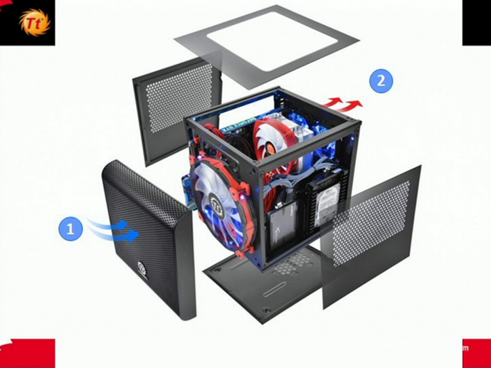 Корпус Thermaltake Core V1 не является специальным продуктом для рынка РФ, но выделяется на фоне остальных корпусов компании тем, что рассчитан на системные платы типоразмера mini-ITX. Размеры корпуса — 276×260×316 мм. Изнутри и снаружи корпус полностью окрашен в черный цвет.