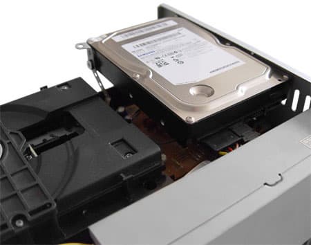 Размещение HDD не потребовало специальных расчетов, да и резать нечего не пришлось. Резьбовые отверстия в корпусе жесткого диска почти совпали с вентиляционными отверстиями задней стенки центра. Осталось немного поработать надфилем и установить демпфирующие резинки, частично гасящие возможные вибрации при работе.