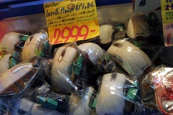Интересно обратить внимание на рекламу — большая ее часть выполнена на японском языке, однако встречающиеся среди иероглифов спасательные английские слова CD, DVD, NET, PC и прочее спасают иностранного покупателя. Есть и знакомые торговые марки (AMD, Adobe, IBM, Toshiba, Apple и пр.):