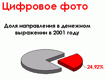 Распределение оборота по направлению цифрового фото в 2001 году выглядит следующим образом: