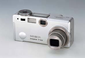 DiMAGE F100 — первая в линейке фотокамер, построенных в соответствии с новой концепцией дизайна. Основными особенностями фотокамер Minolta серии «F» будет их элегантный дизайн и высокая производительность. Эти фотокамеры будут созданы с применением самых передовых цифровых технологий и откроют новое направление дальнейшему развитию цифровой фотографии.
