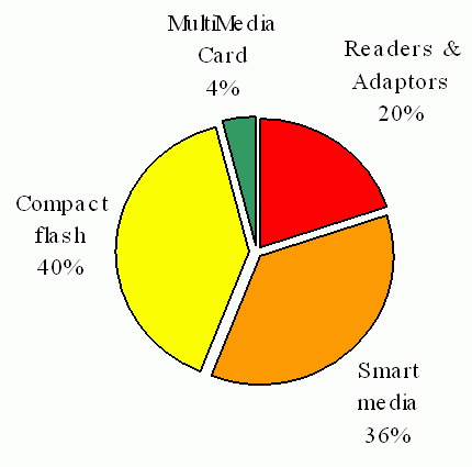 Разумеется, цифровые камеры не могут работать без носителей памяти. Наиболее популярными по-прежнему являются носители формата CompactFlash, в общем обьеме продаж (включая устройства для чтения flash-носителей) компании «Alion» они занимают около 40% . Постепенно набирает популярность формат MultiMedia Card и Secure Digital, за счет их применения в новых камерах таких компаний как, например, HP и Minolta.