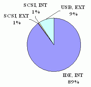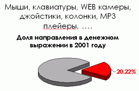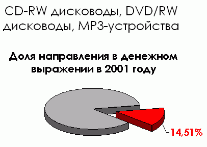 Нельзя обойти вниманием и устройства записи. В 2001 году доля направления в денежном выражении выглядит следующим образом: