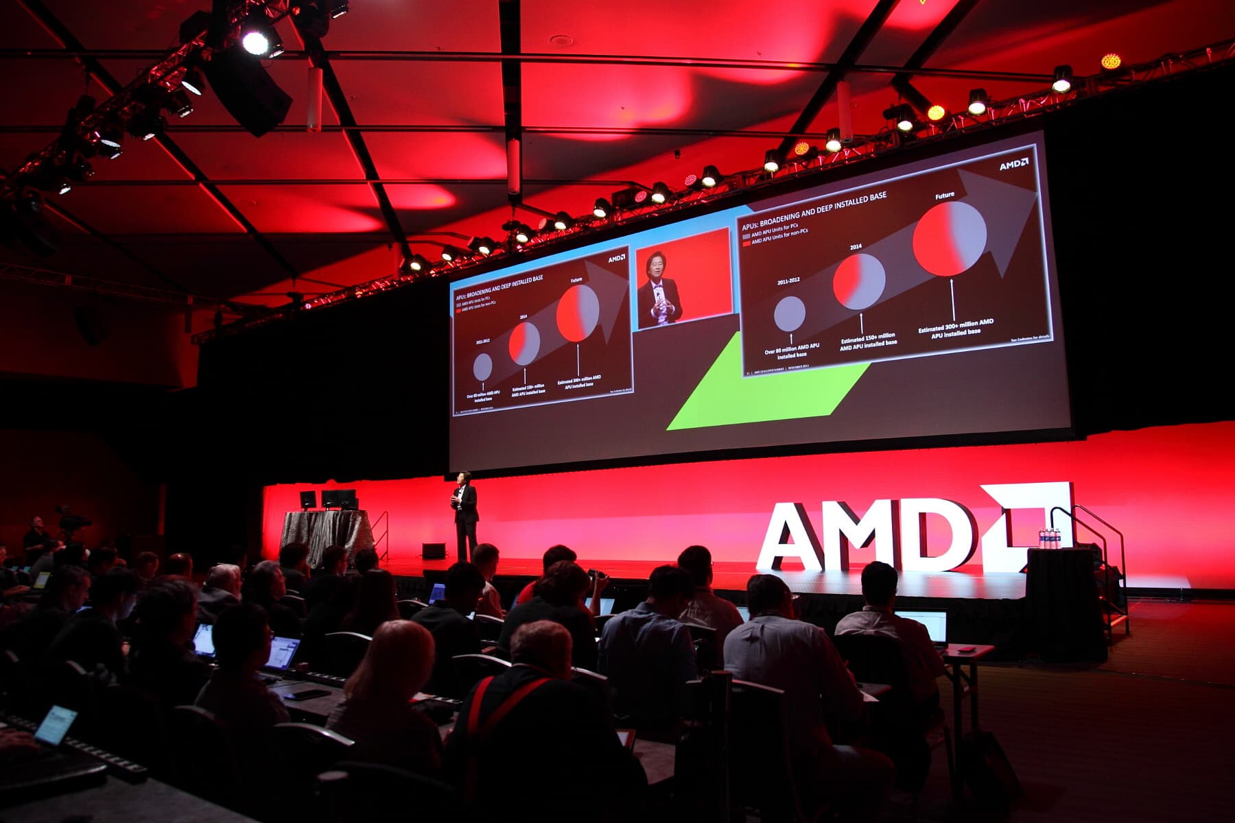 В первый день APU13 с ключевыми докладами выступили представители самой компании AMD. Докладчиков представлял Джон Тейлор — корпоративный вице-президент компании AMD по глобальным связям, он пригласил на сцену главную докладчицу этого дня Лизу Су (Lisa Su) — старшего вице-президента и генерального менеджера Global Business Units и она выступила с докладом: «Разработчики — сердце инноваций AMD».
