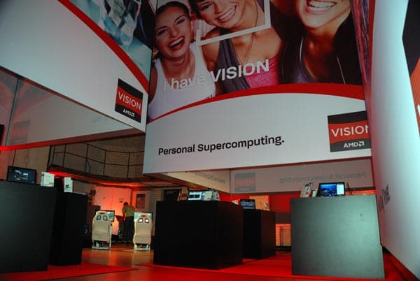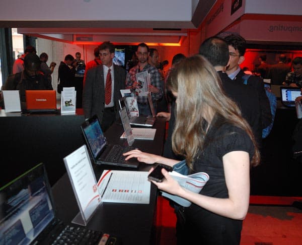 После небольшого перерыва на сцене вновь появилась госпожа Лесли Собон и представители партнеров компании. Они поговорили об успехах в продвижении продукции AMD. Итог выступлениям подвел господин Альберто Боззо (Alberto Bozzo), который обратил внимание присутствующих на гигантские красочно оформленные кубы в задней части зала. Под торжественную музыку кубы поднялись вверх, обнажив перед взглядами собравшихся стенды с новейшими образцами мобильных компьютеров на базе APU AMD, в том числе, и совершенно новой серии A.