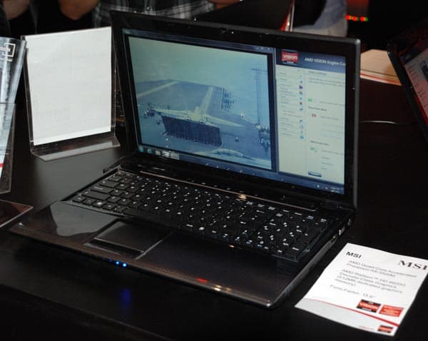 Продукция MSI была представлена моделью с экраном размером 15,6 дюйма на APU A8-3500M с интегрированным графическим процессором AMD Radeon HD 6620G, в распоряжении которого находится 512 МБ памяти.