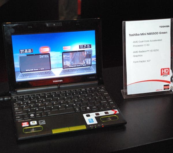 «Малютка» с экраном размером 10,1 дюйма — Toshiba Mini NB550D Green. Основой системы, заключенной в миниатюрном корпусе, является двухъядерный APU C-50 с интегрированным GPU AMD Radeon HD 6250.