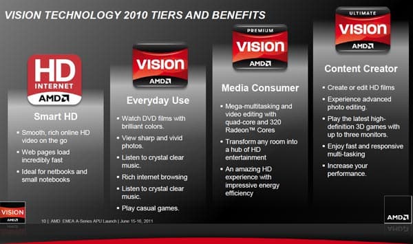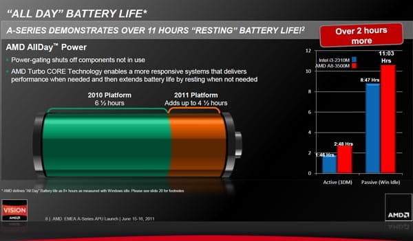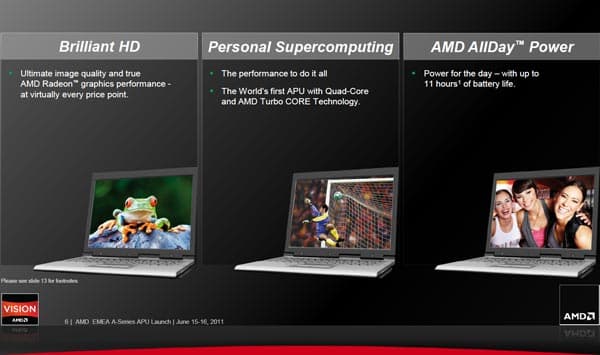 Если постараться максимально сжато представить достоинства APU, на которые делает упор AMD, останется три пункта: поддержка HD, высокая производительность, длительное время автономной работы.