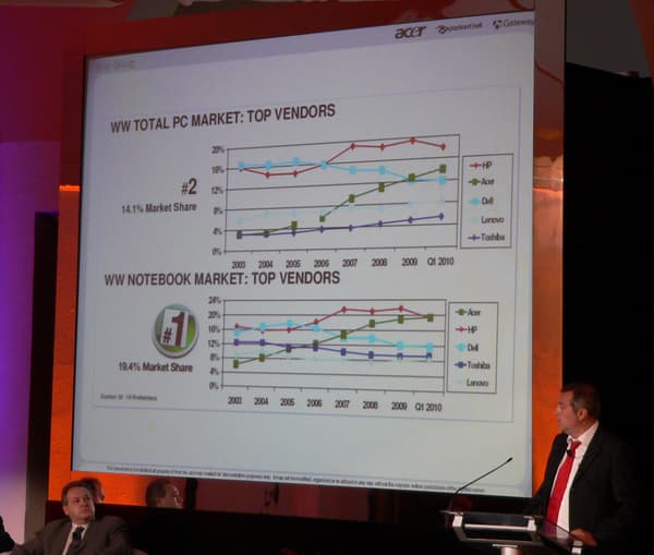 Всегда любопытно взглянуть на расстановку брендов по объемам продаж. На сегодняшний день Acer делит с HP первое-второе место. И если для HP такая позиция привычна, то с точки зрения Acer налицо явный прогресс, фактически эта компания сейчас занимает то место, которое в 2003 году принадлежало DELL.