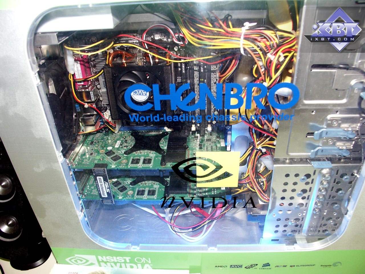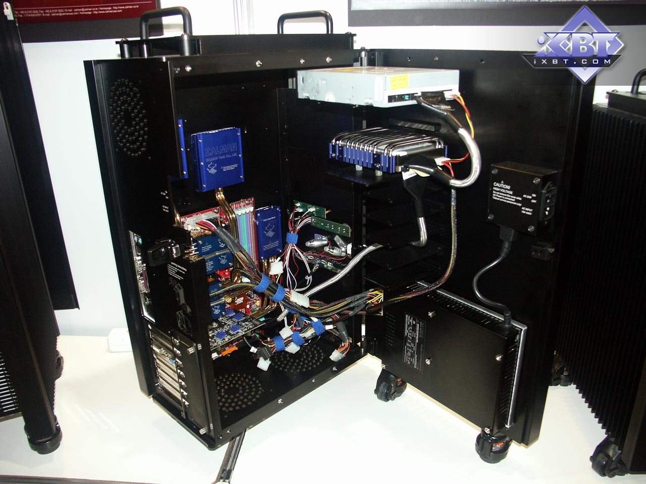 Примерно такая же обстановка была и на стенде этого именитого производителя корпусов. Лишь батареи хорошо известных нам изделий разного калибра и окраса стояли кругом. Никаких новинок, изюминок, да и народу на стенде не так много бывало (наблюдал, когда неоднократно проходил мимо). Единственное, чем горды в компании — что они успели во всех линейках корпусов уже обновить системные блоки с 24-пиновым разъемом питания и 6-пиновыми «хвостами» для PCI-E видеокарт.