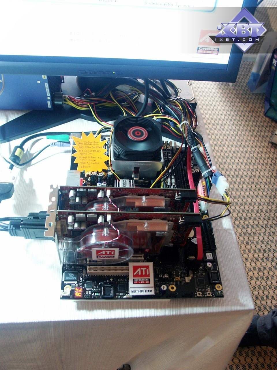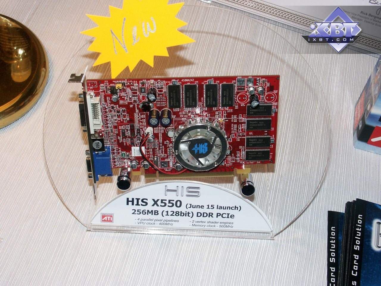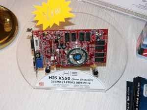 Разумеется, был показан и CrossFire (эта технология, напомню, демонстрировалась на всех стендах партнеров ATI). А также новые продукты в области Low-End сегмента: X550, X300SE (новый дизайн).