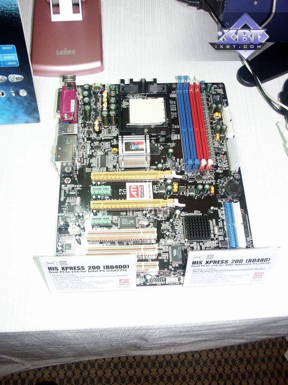 Компания HIS, как и Intel, Sapphire и др. не имела своего стенда в павильонах, а ограничилась лишь комнатами в отеле Hayatt, однако экспозиция была очень интересной. Прежде всего, это конечно же, материнские платы. Да-да, HIS также будет выпускать системные платы, разумеется, на базе чипсетов ATI. Уже было представлено две платы на базе новых продуктов канадской компании.
