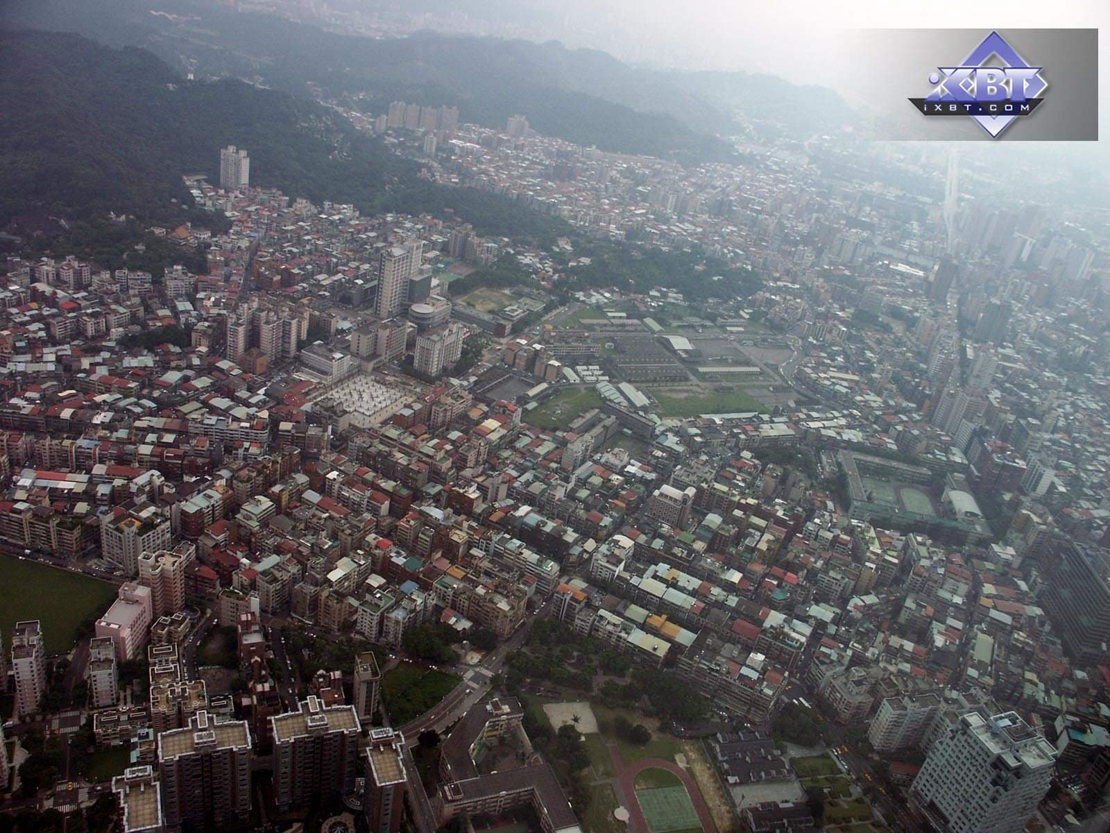 | Итак, наш краткий фотоотчет о поездке на выставку закончен. Но это не финал повествования. Закончена, так сказать, официальная часть. К сожалению, не все успели подробно и детально изучить, уже третьего июня — вылет в Москву. Однако в конце посещения выставки я все же успел побывать на 89-м этаже Taipei 101 и вот какие виды на город оттуда можно лицезреть (к сожалению, все дни над Тайпеем висела дымка). |  |