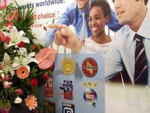 | По ходу движения от стенда Compro дальше по павильону встретилась группа зеленых ангелов, на которых эффектно дул ветер, развевая их одеяния. Но и эти ангелы по-китайски лишь что-то кричали, раздавая всякие бонусы (вот еще раз понимаешь, насколько эта выставка внутренняя для местных, даже не могли найти нормальных актеров, способных общаться на чистом английском.. Хотя тогда большинство китайцев их не поймет :-) ) |  |