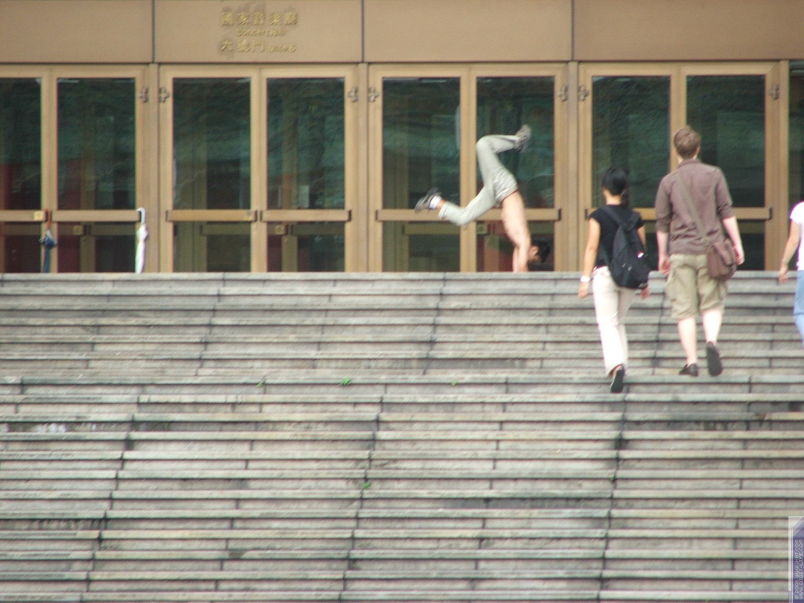 На ступеньках и перед входом в концертный зал молодые люди занимались брейк-дансом. :)