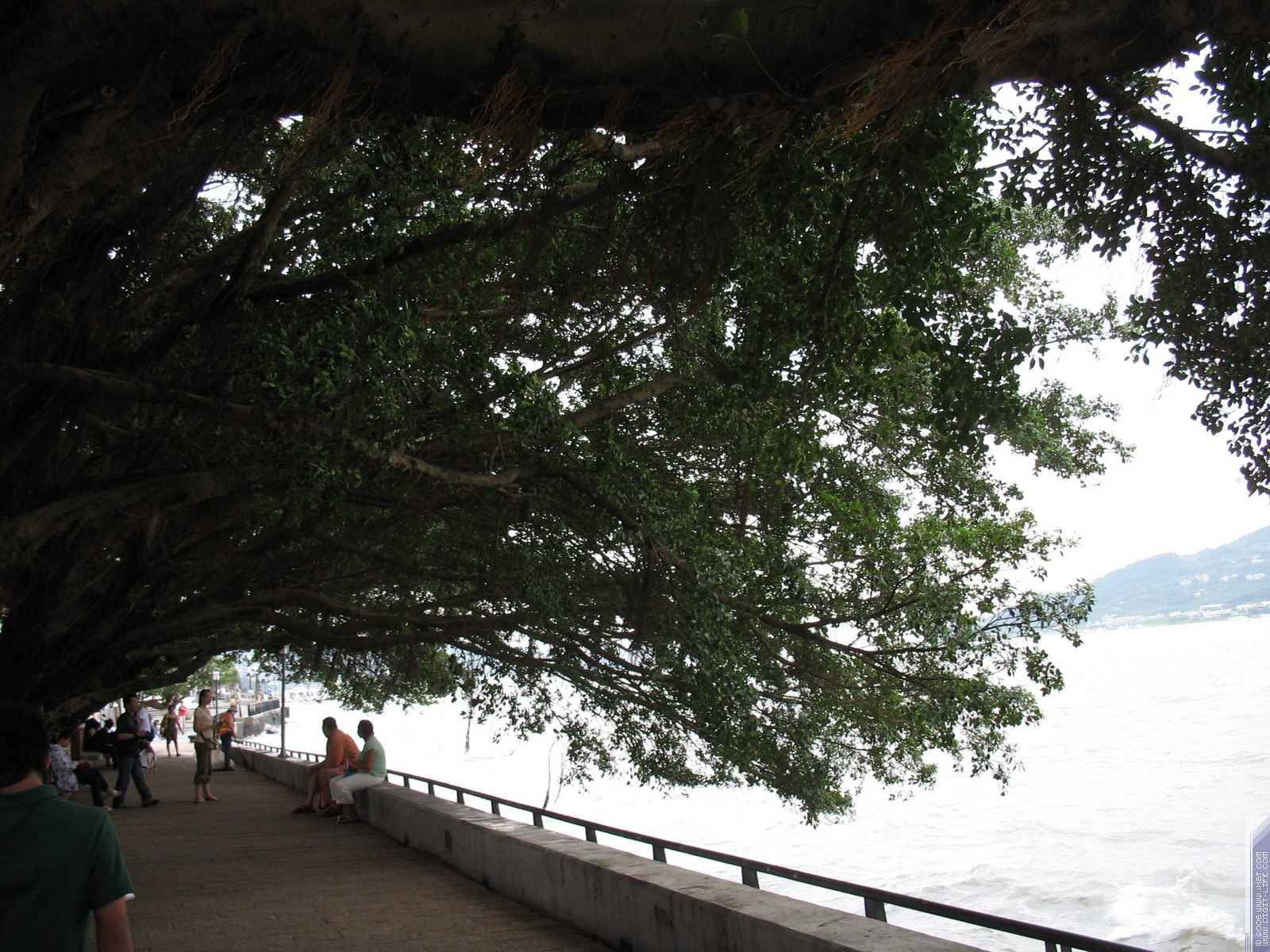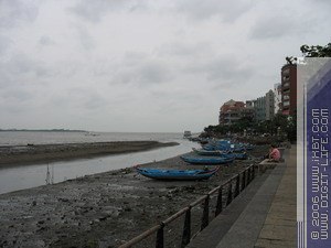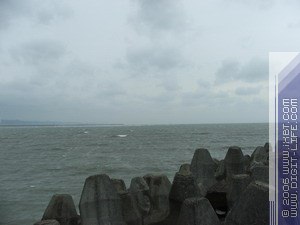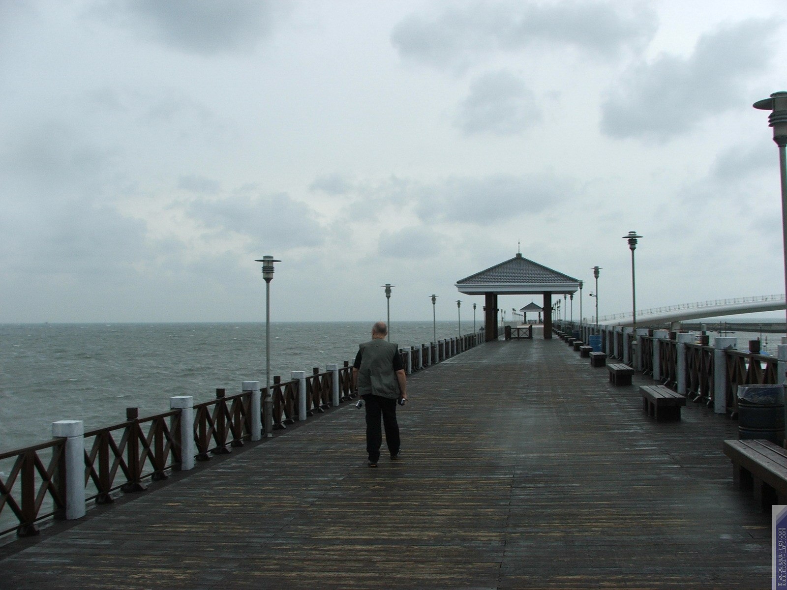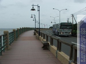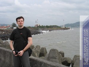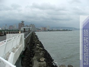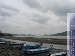 После возвращения в отель и небольшого отдыха мы отправились в Даньшуй. Это самое дальнее место, куда идет тайпейское метро. Я уже говорил, что метро только в центре города под землей. А потом выходит на поверхность, и большую часть пути идет по эстакадам. До Даньшуя ехать около часа. Ужасно странно было видеть горы, реку, мосты и понимать, что ты в метро…