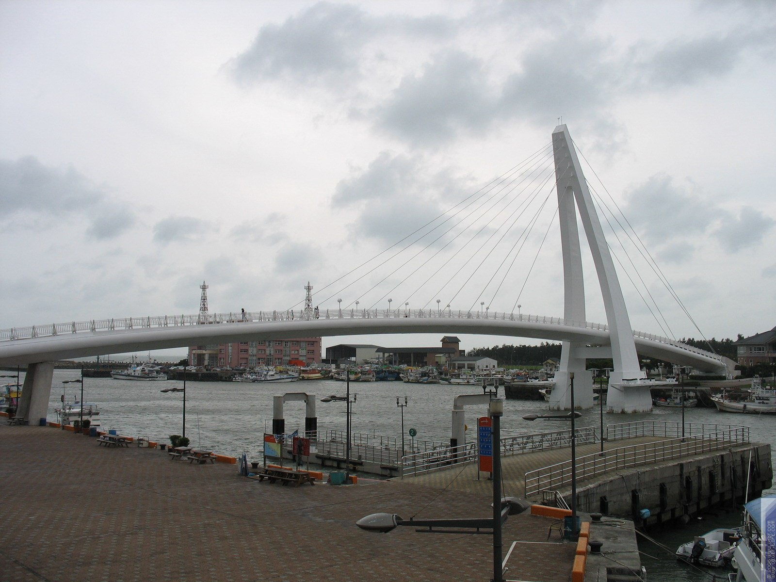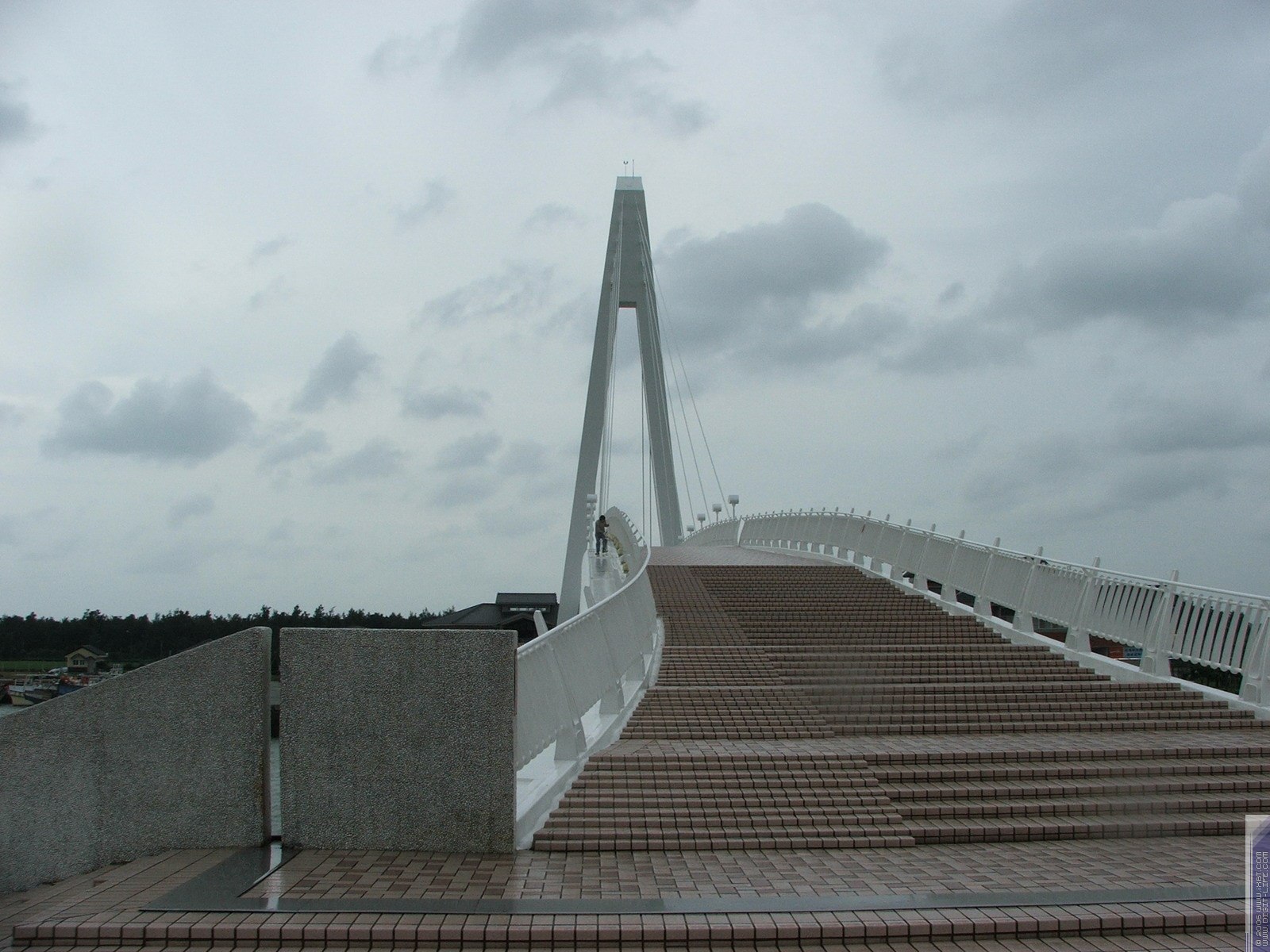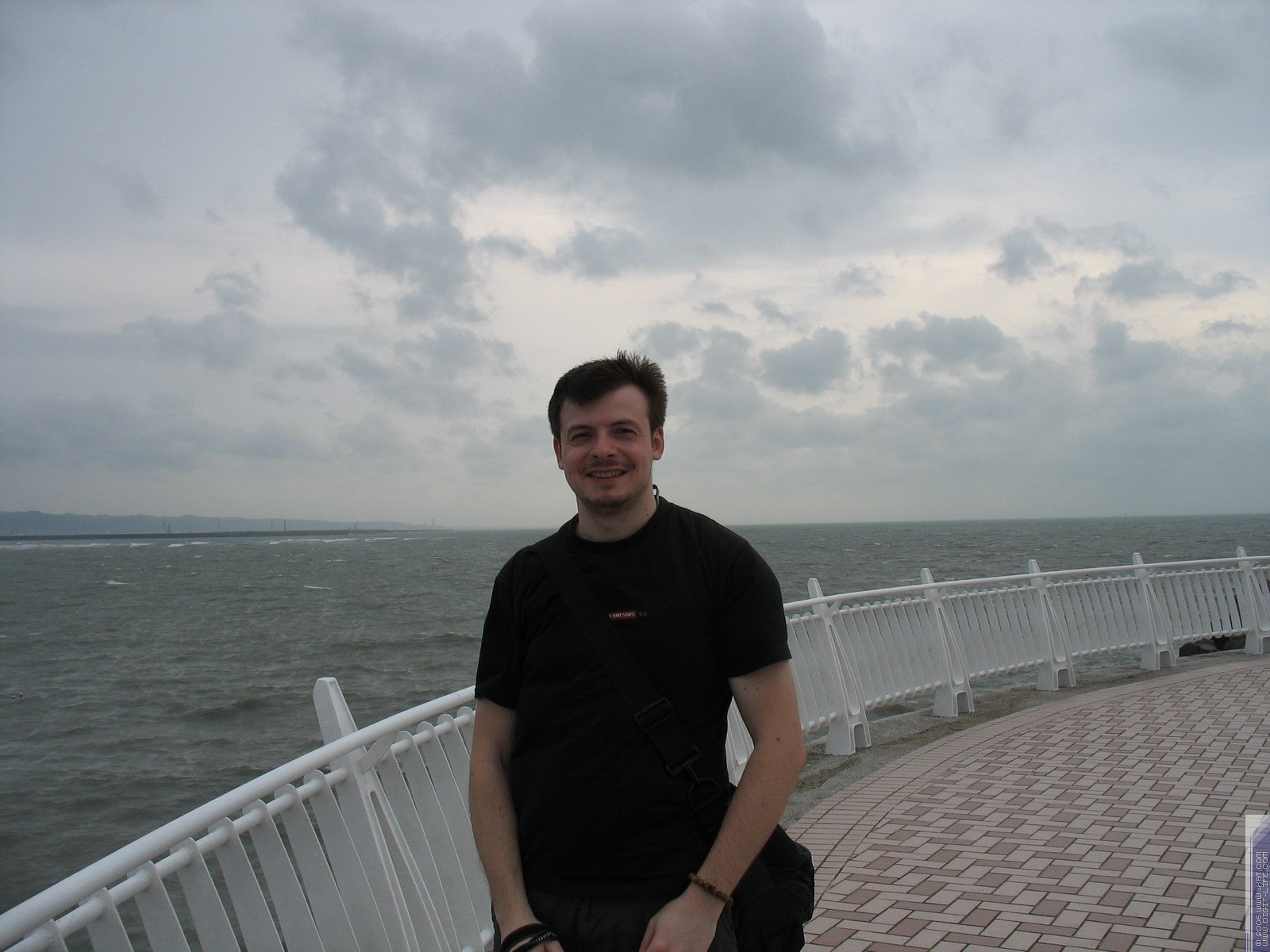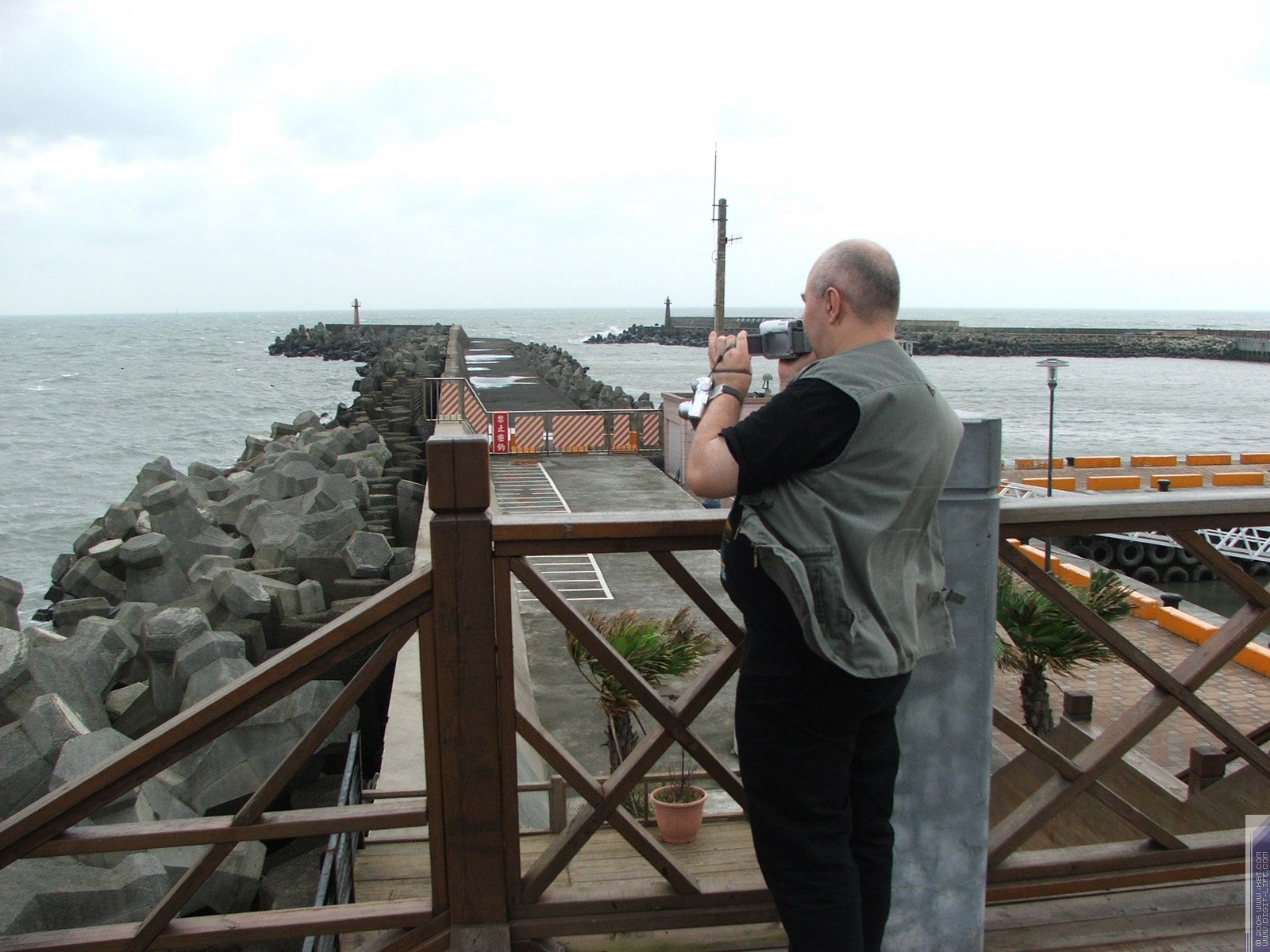 Наконец-то мы попали куда хотели. Вдоль рыбацкой бухточки построен специальный мост-площадка для обзора. Обычно тут можно любоваться закатом в море. Но сегодня пасмурно, плюс ветер очень усилился. Нас буквально сшибало с ног. Даже дождь не чувствовался, капли тут же высыхали от ветра. Но ветер дул поверх моря, поэтому волны были небольшими.