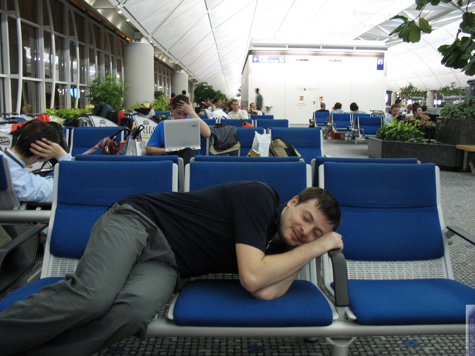 Нам в аэропорту Гонконга предстояло ждать почти 4 часа следующего рейса. Поэтому успели и обойти все магазины, и поваляться на креслах и т. д. :))