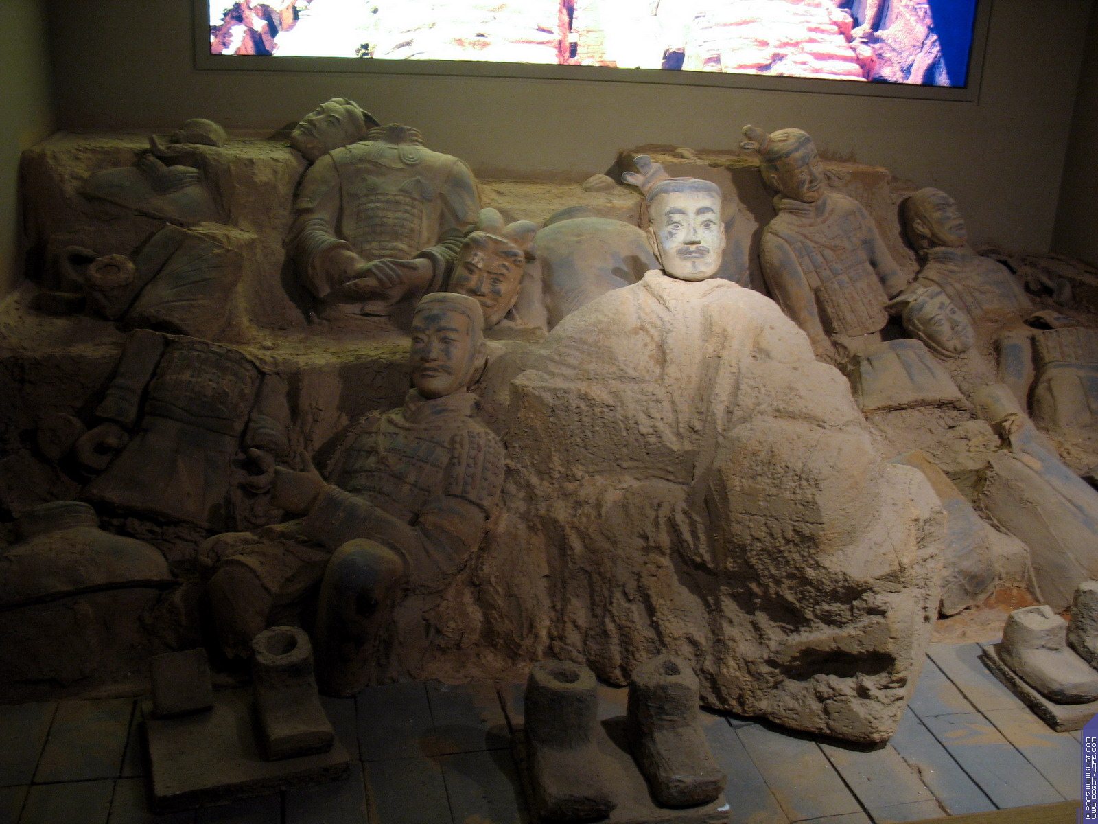 Это захоронение по крайней мере 8099 полноразмерных терракотовых статуй китайских воинов и их лошадей, обнаруженное рядом с гробницей китайского императора Циня Ши Хуан Ди,