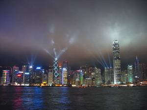 со стороны полуострова, оборудованы разного рода подсветками и прожекторами, в том числе и лазерными. Поэтому шоу смотрится только со стороны полуострова Коулун, где оборудована