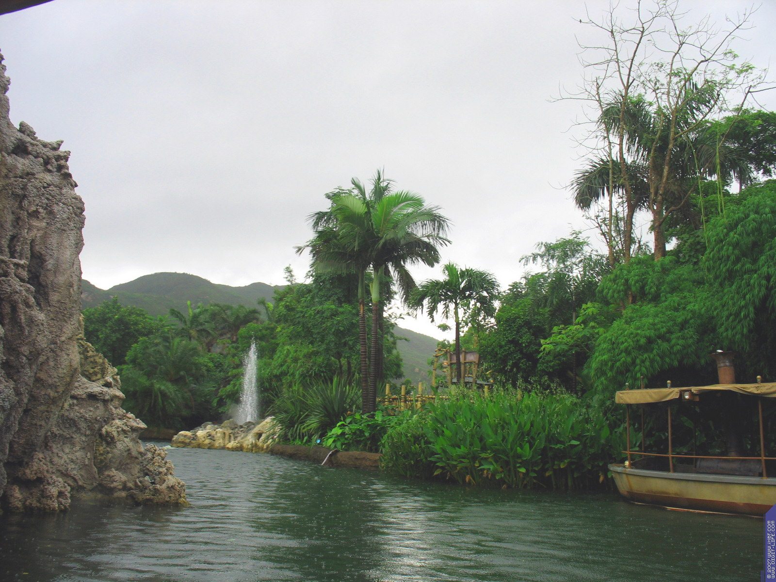 Сам дом Тарзана сделан на искусственном дереве, грамотно обсаженном настоящими. И если бы не уродливо сделанные большие листья искусственного дерева, то и не заметишь что оно не настоящее. К нему надо переправляться на больших плотах, которые сделаны под старинные, но на деле это моторные лодки, которыми ловко управляют девочки-перевозчицы.