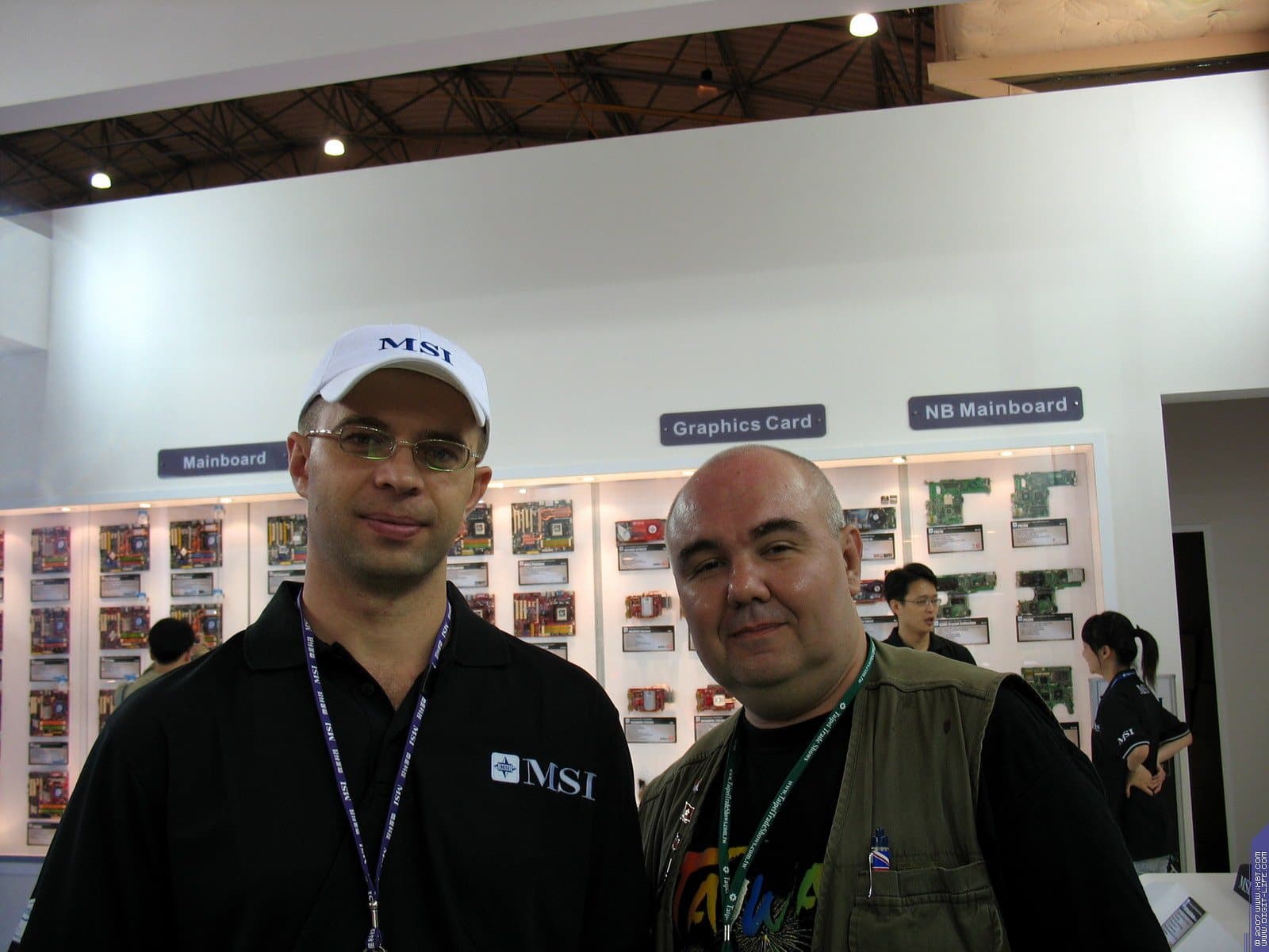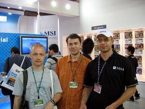 Первым по ходу был павильон номер два, потому с него и начали посещение. И тут же попали на стенд MSI, который прямо рядом у входа, заодно пообщались с Александром Немошкаловым, представителем MSI в России.