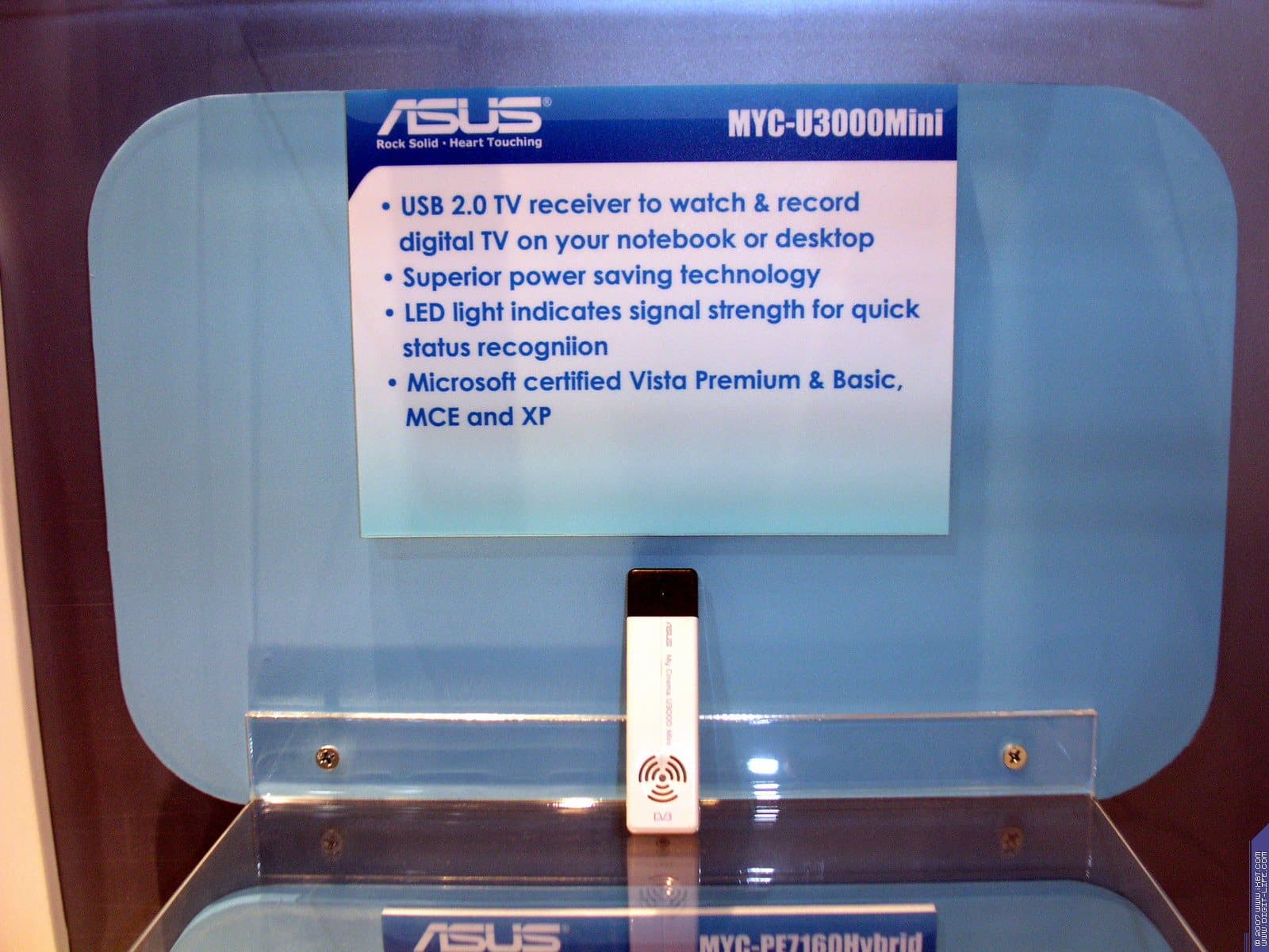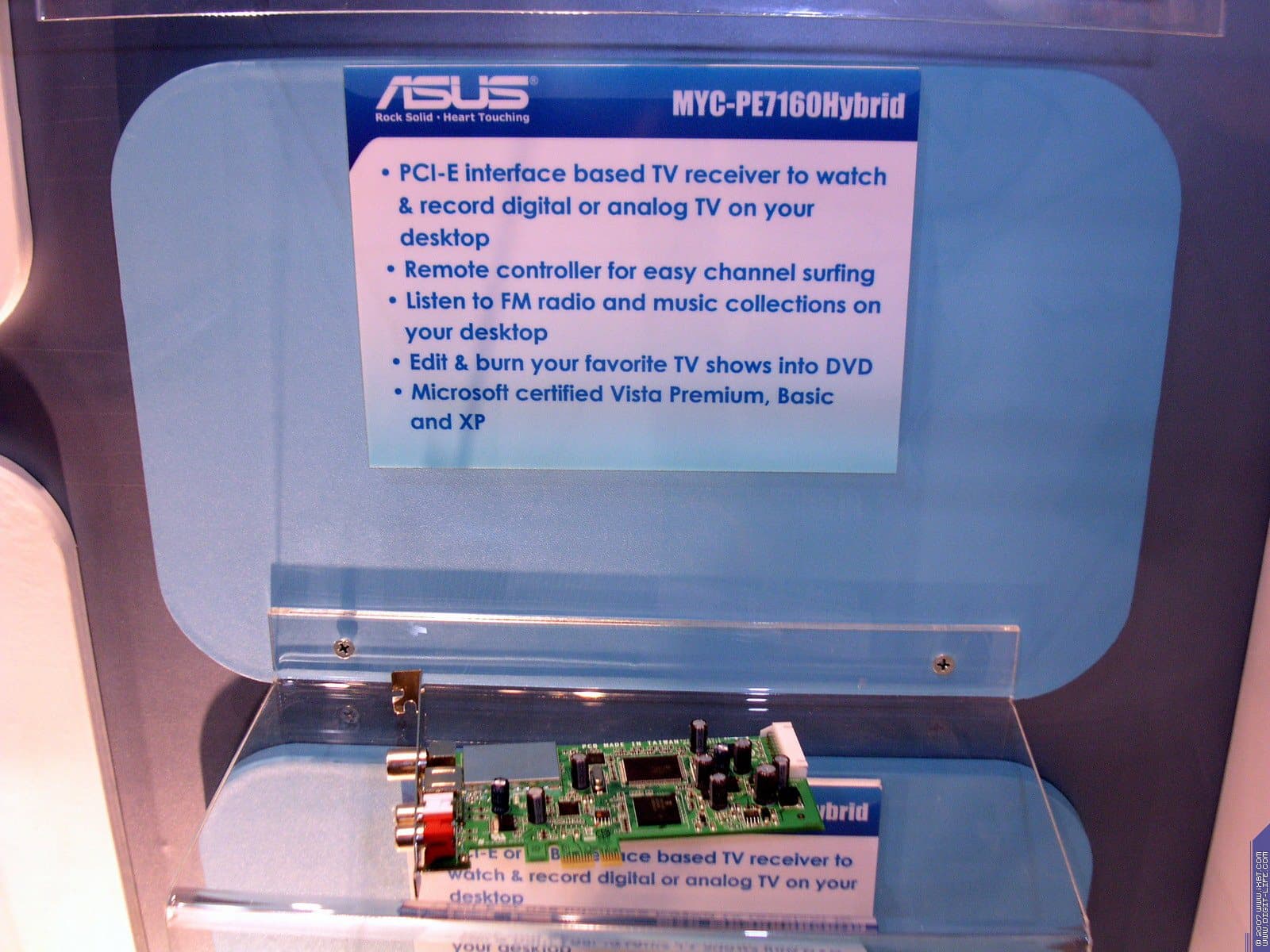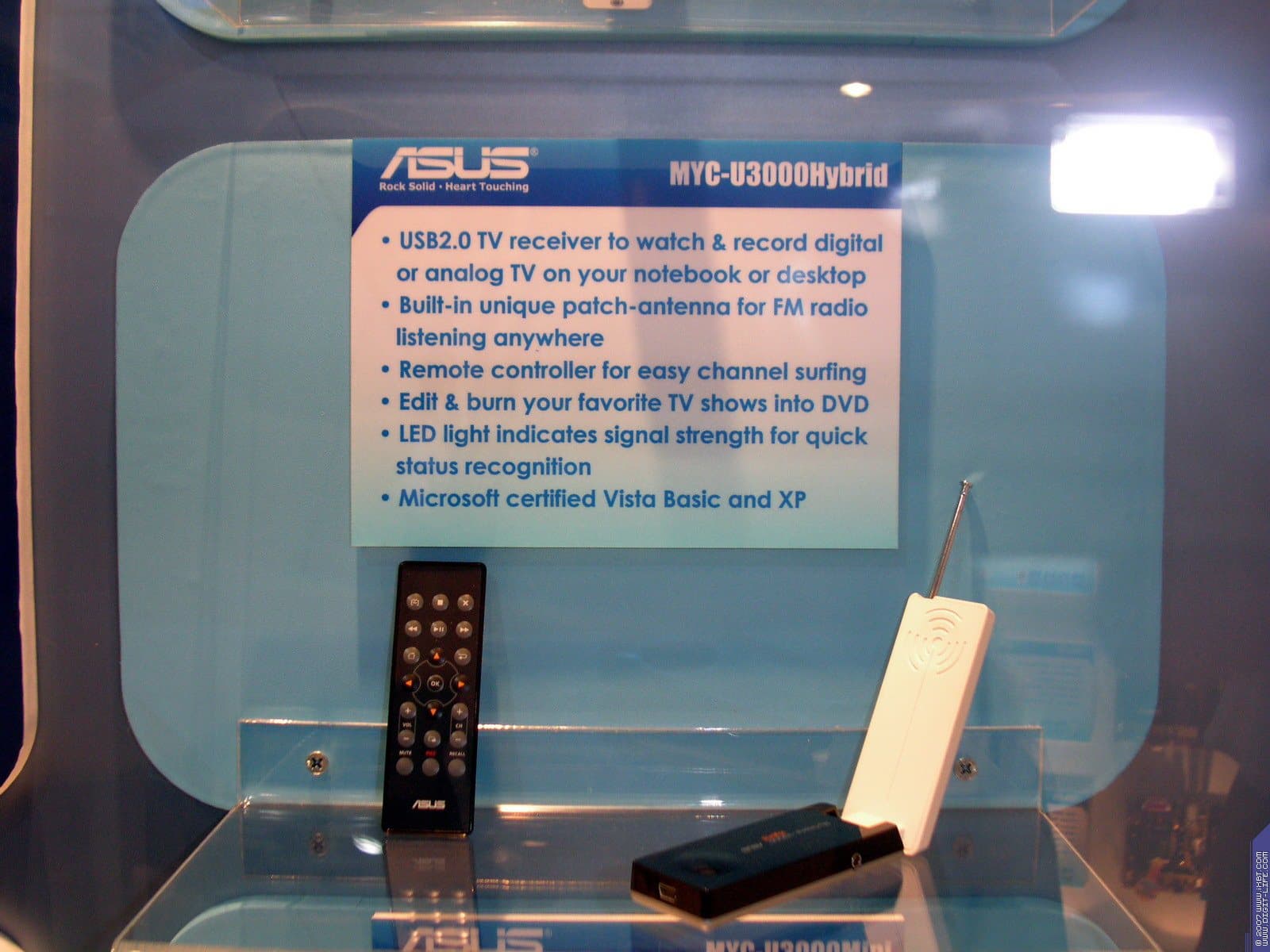 | Весьма любопытно было увидеть устройства захвата аналогового видеопотока и просто цифровые ТВ-тюнеры в исполнении ASUS. | ![]() |