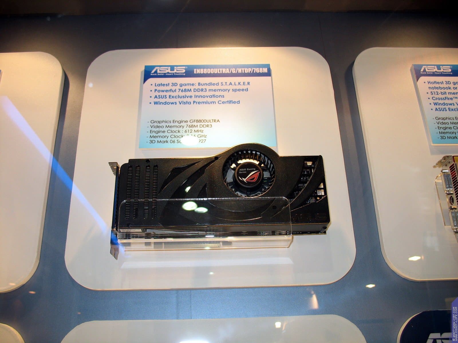 Подробно о стенде этой компании уже ранее рассказал Александр Воробьев, потому мы сразу перейдем к следующему стенду — конкуренту MSI — компании ASUSTeK.