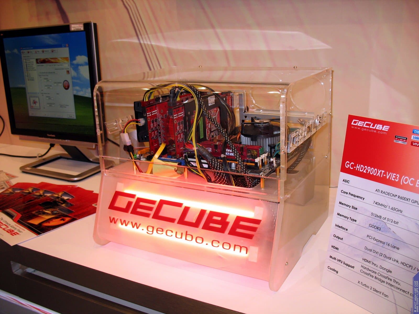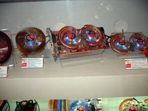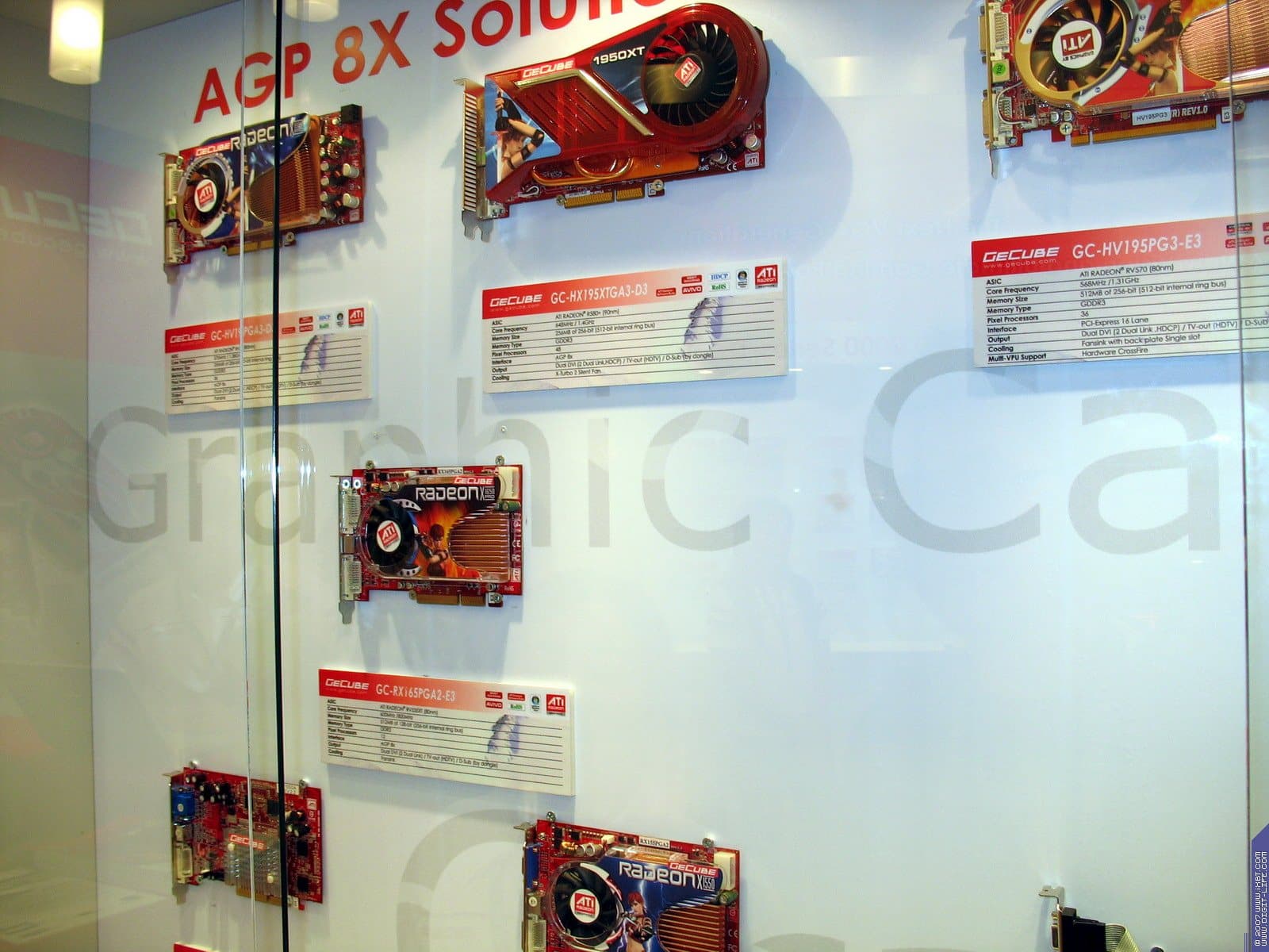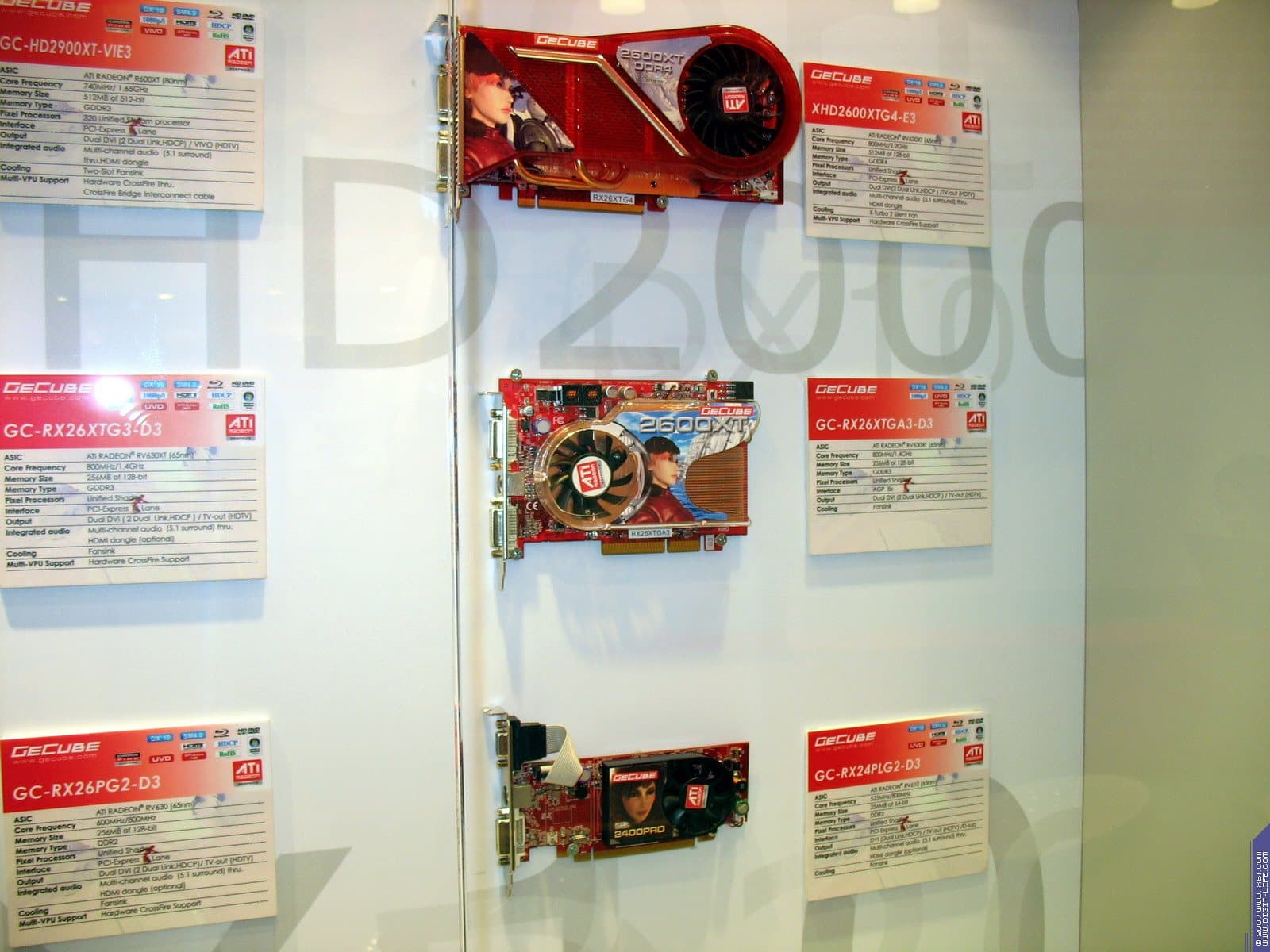 Пока остальные сотрудники осматривали разные интересные экспонаты, фотографировались с многочисленными фото-моделями местного разлива и беседовали с представителями той или иной компании, редактор 3D-Video тихо посетил стенд GeCube, который был в традиционно красных красках. Разумеется все потому, что производит исключительно видеокарты на базе красно-белых процессоров ATI (сейчас AMD). Почти все новые карты оснащены фирменным кулером от GeCube, который компания использует уже года 2 или 3. Впрочем, устройство действительно хорошее и эффективное.