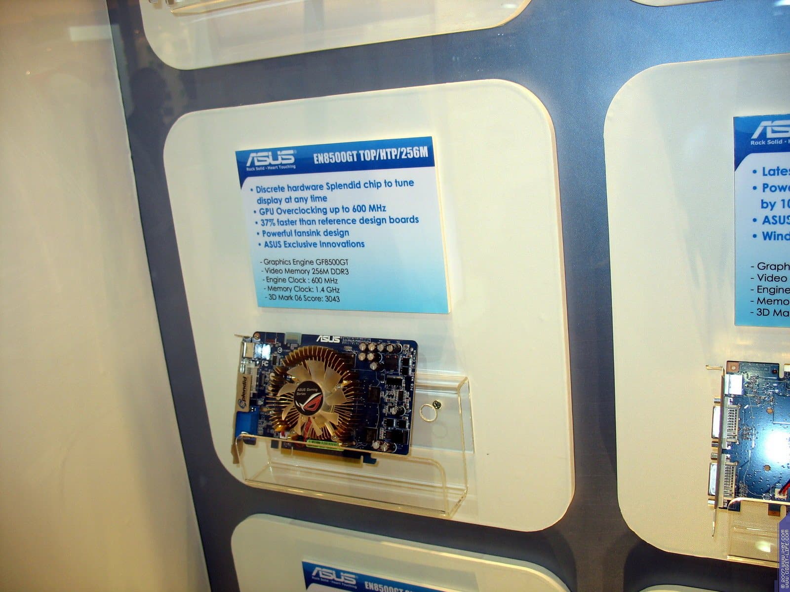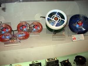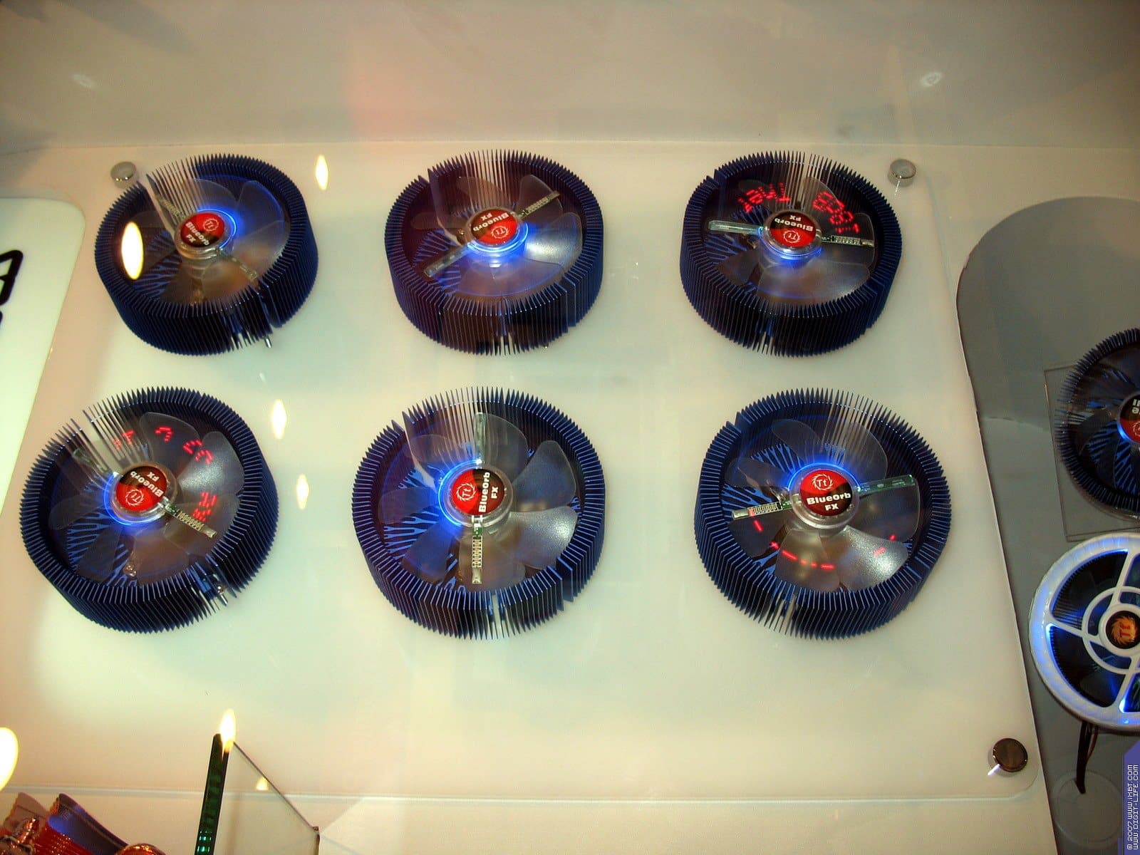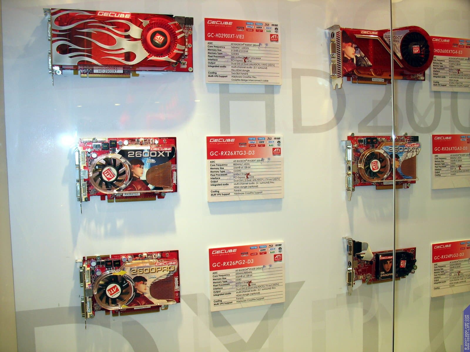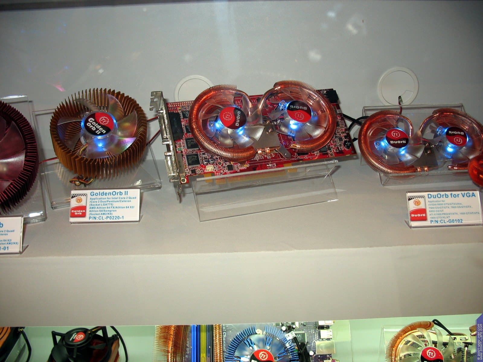 Пока остальные сотрудники осматривали разные интересные экспонаты, фотографировались с многочисленными фото-моделями местного разлива и беседовали с представителями той или иной компании, редактор 3D-Video тихо посетил стенд GeCube, который был в традиционно красных красках. Разумеется все потому, что производит исключительно видеокарты на базе красно-белых процессоров ATI (сейчас AMD). Почти все новые карты оснащены фирменным кулером от GeCube, который компания использует уже года 2 или 3. Впрочем, устройство действительно хорошее и эффективное.