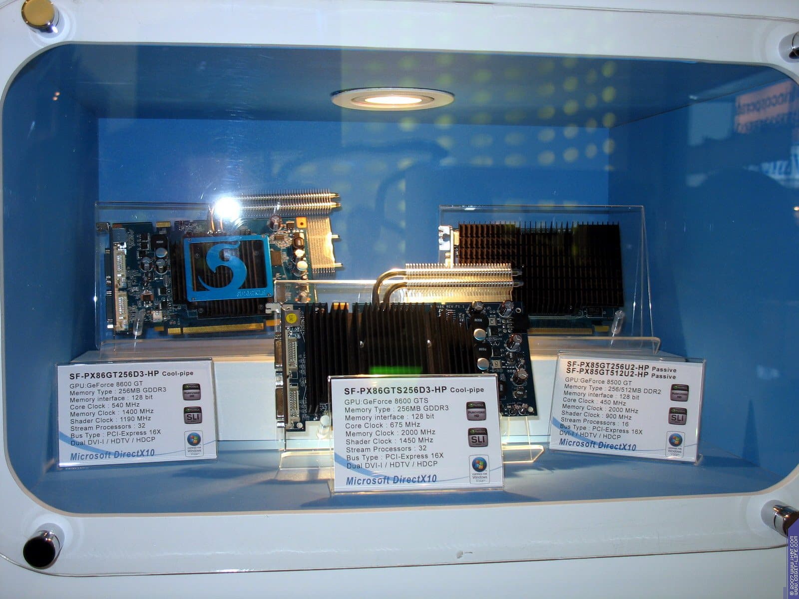 Разумеется, представлен весь спектр современных решений от GeForce 8400 до 8800 Ultra. Ассортимент просто колоссальный. Стоит особо отметить, что в эпоху массового использования аутсортинга, когда компания-производитель того или иного ускорителя не имеет своего производства или просто не использует его, а размещает заказы на сторонних предприятиях, у Sparkle есть свое собственное производство, и все видеокарты реально выпущены самой компанией (за исключением High-End сегмента типа GeForce 8800 -серий, где уже по воле NVIDIA невозможно самому выпускать такие карты, а требуется закупать их у американского чип-мейкера).