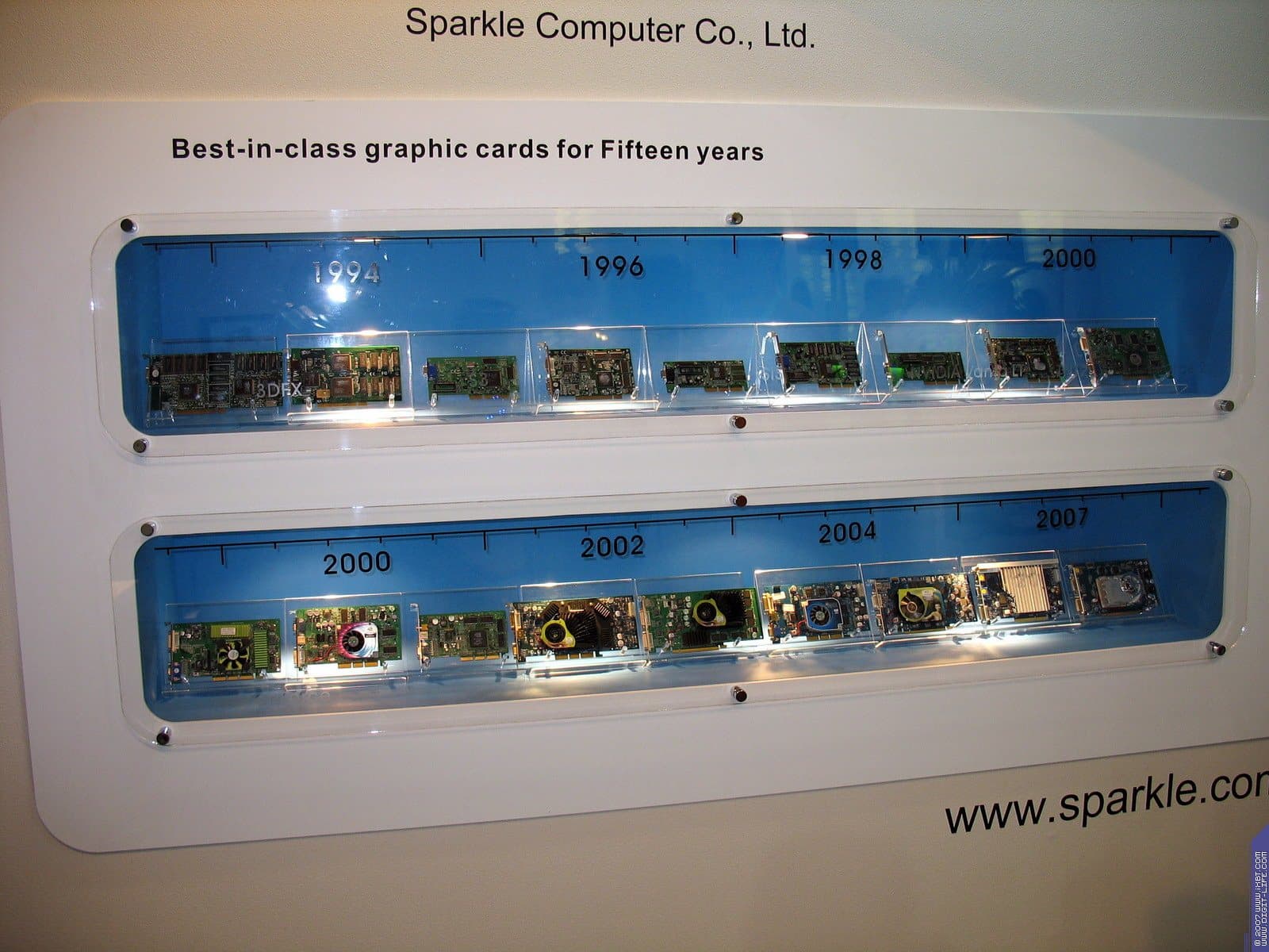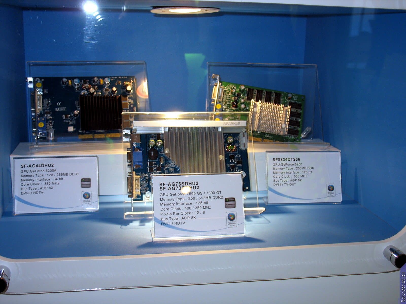 Любопытно отметить особый стенд, где представлена вся история видеокарт от Sparkle. Ни у кого больше такого мы не встречали больше.