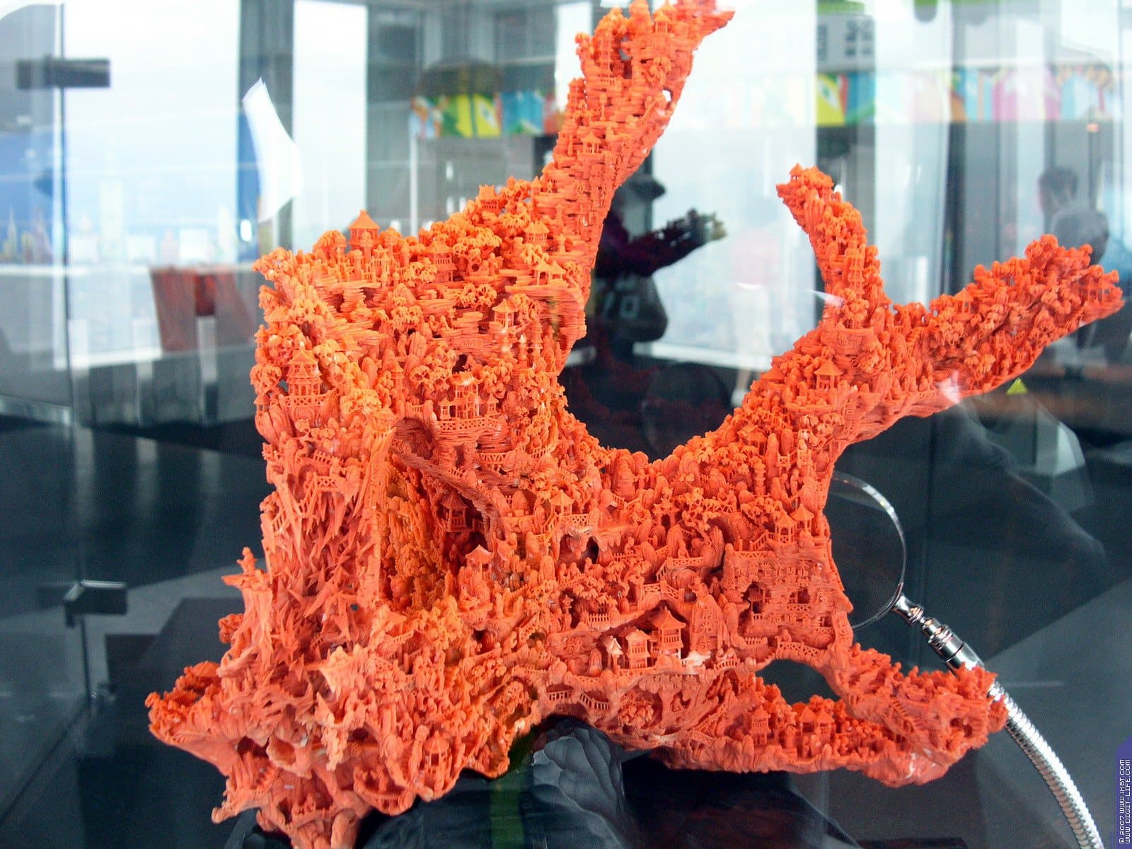 | Здесь же в зале можно посмотреть и выставку-продажу изделий из очень редкого и очень дорогого красного коралла. Стоимость изделий достигает 6 000 000 рублей. | ![]() |