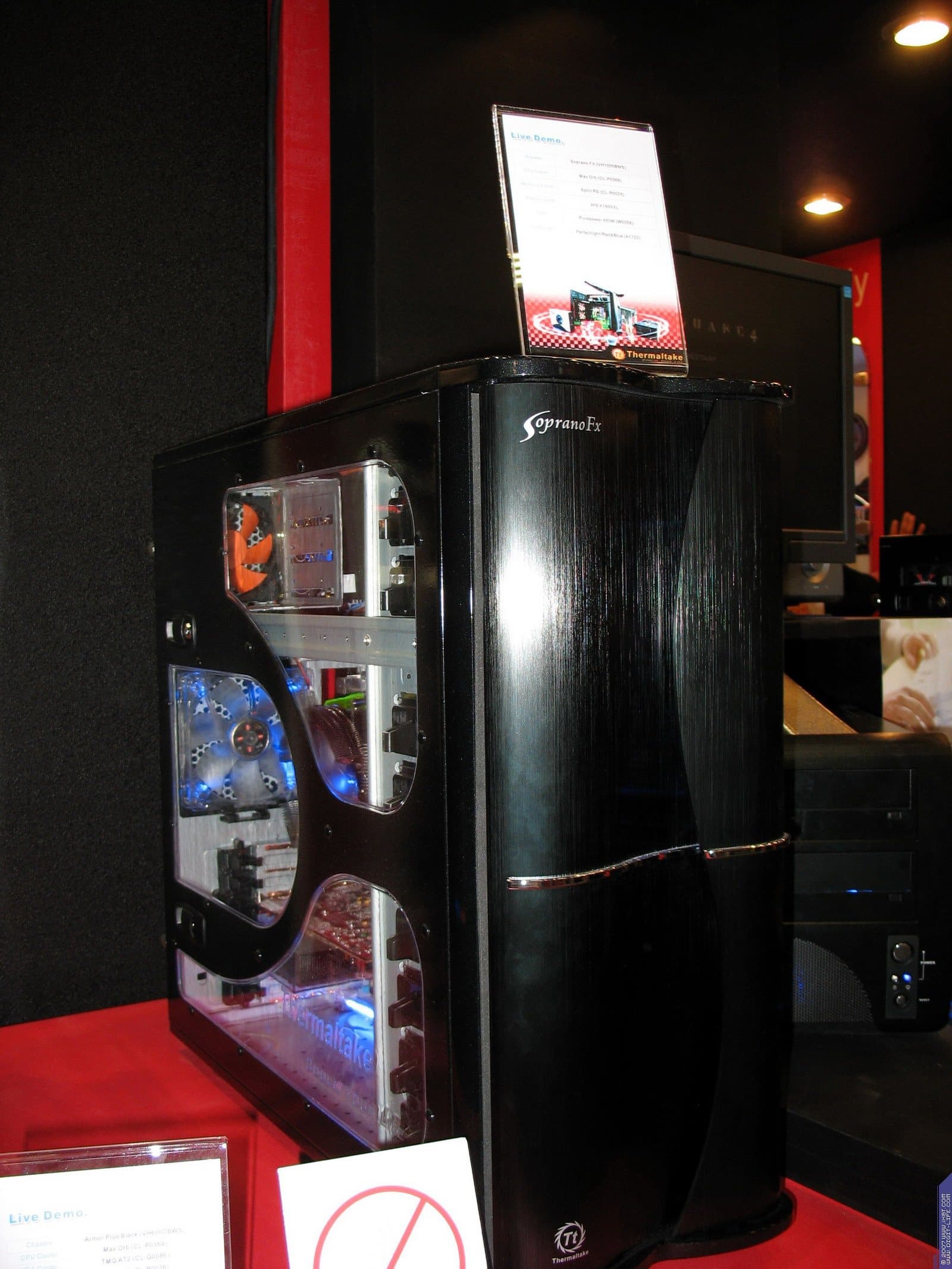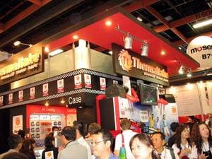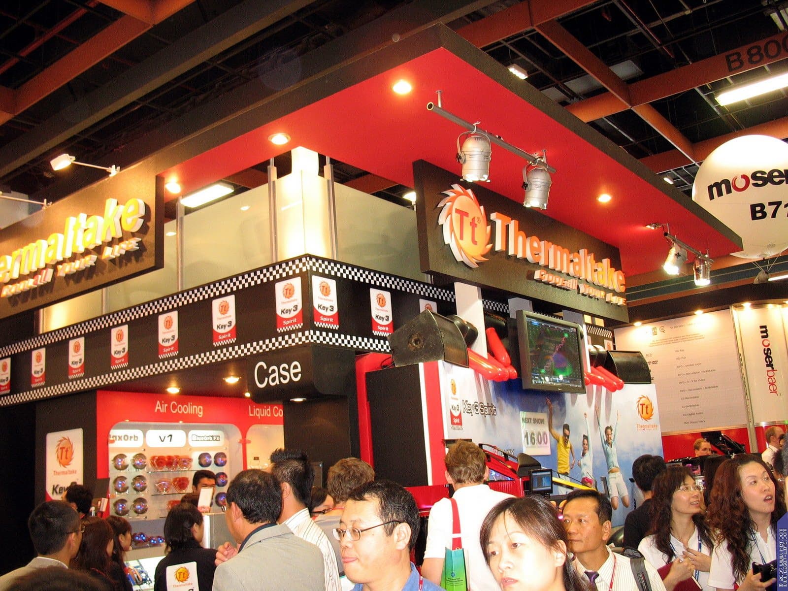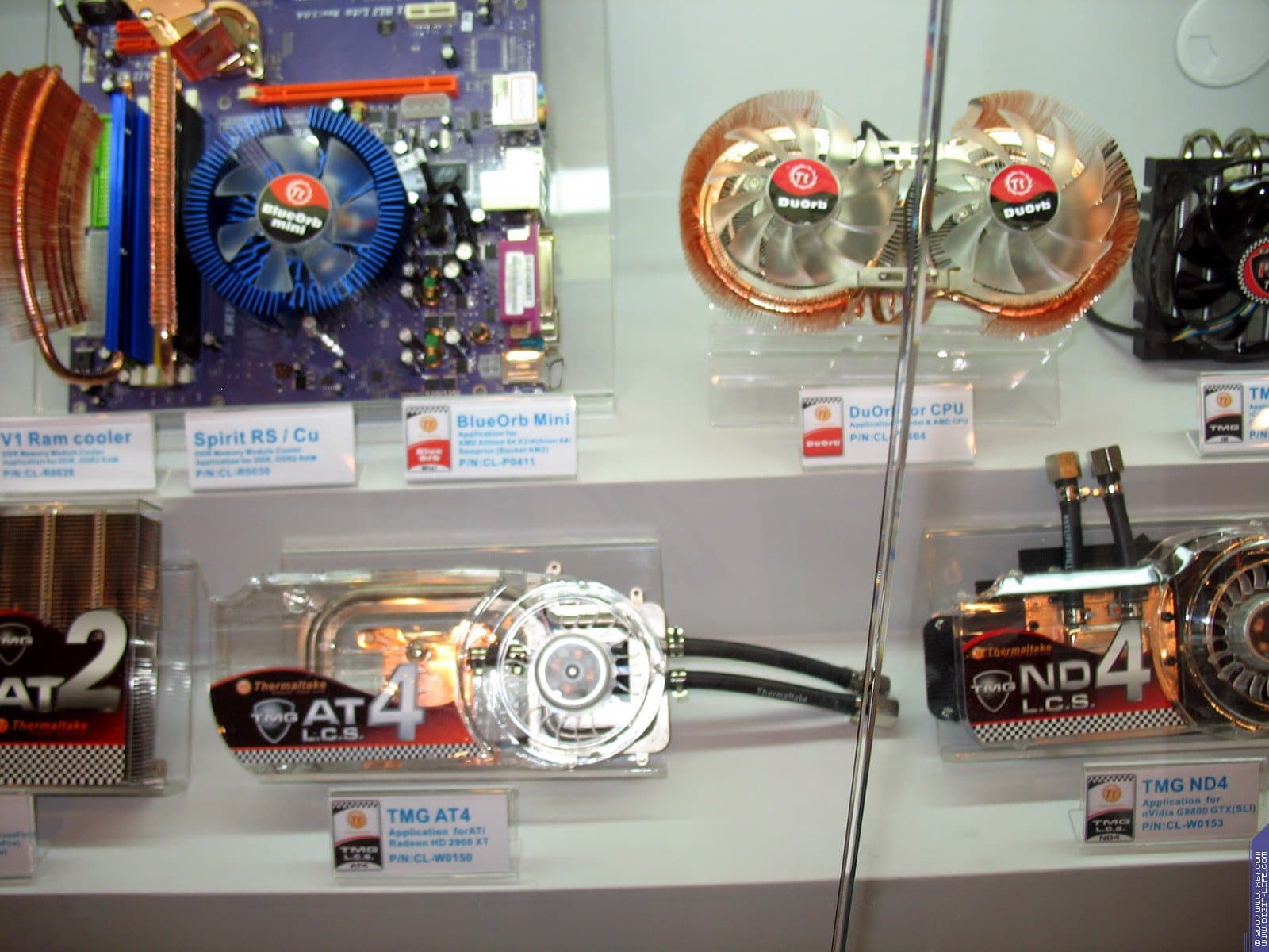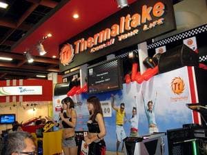 В том же павильоне номер один можно встретить и любимца российских «охлаждальщиков и корпусячников» — стенд компании ThermalTake, яркая россыпь продуктов которой говорит сама за себя. Полагаем, что читатели, которым интересны устройства охлаждения, сами по фотографиям смогут увидеть что-то новое.