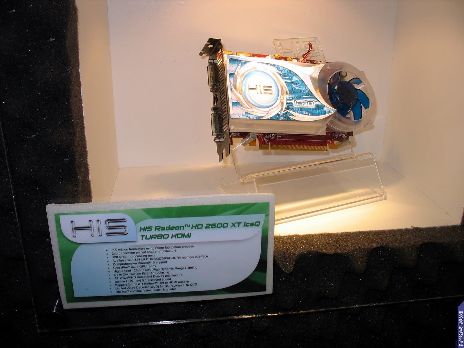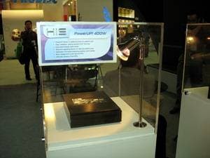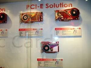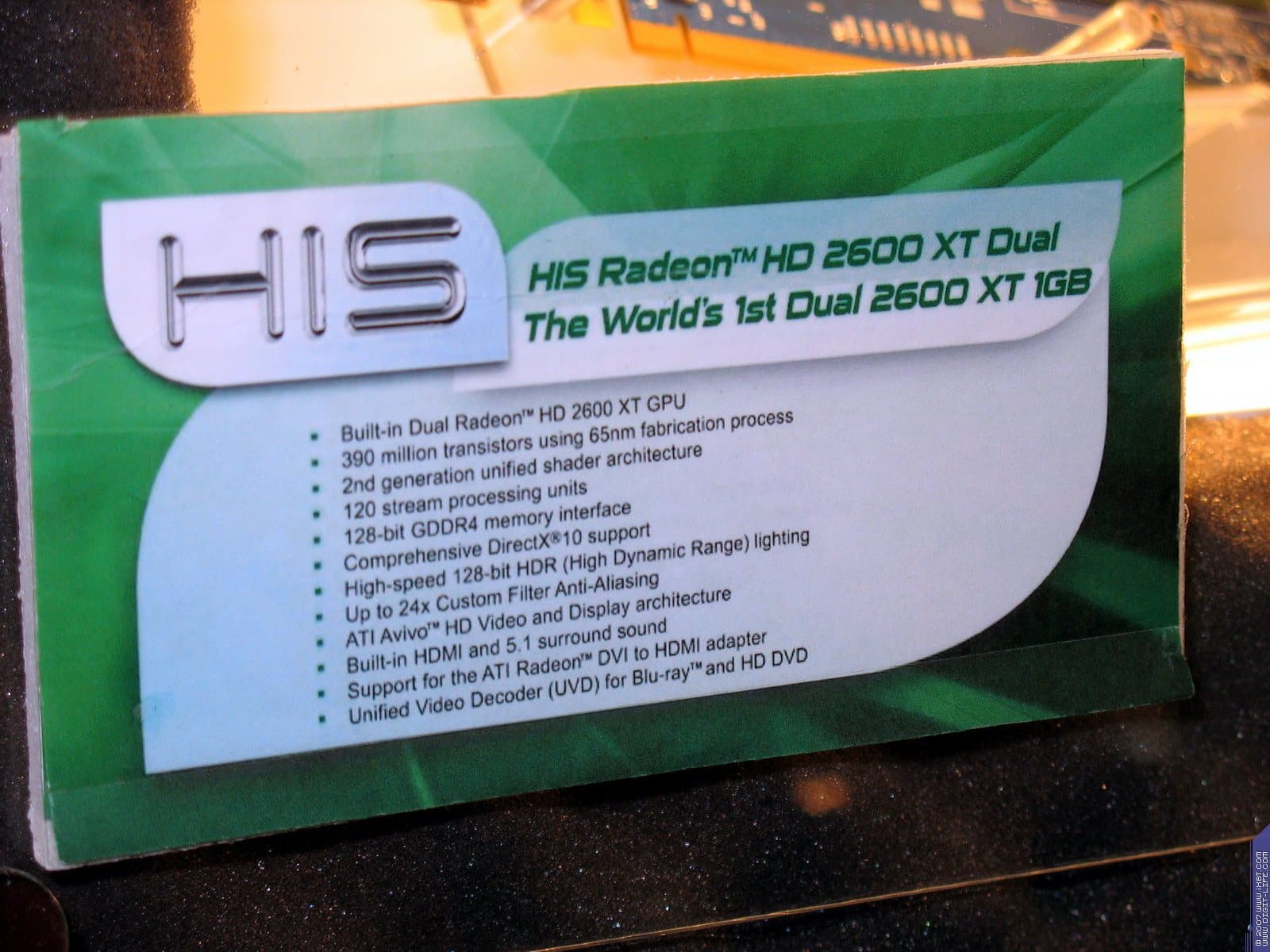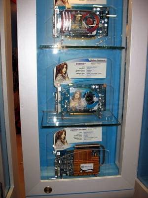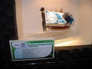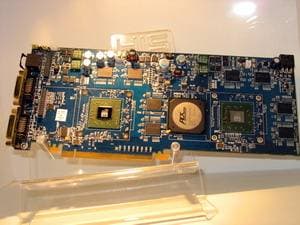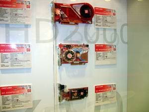 | На стенде мы встретили Питера Йенга, одного из соучредителей компании, которого давно и хорошо знаем. Он рассказал нам о новом направлении работы фирмы — выпуске своих блоков питания, в том числе и вспомогательных для видеокарт, устанавливаемых в пятидюймовый отсек системного блока. В остальном, ассортимент полностью отвечал направленности фирмы — выпуске видеокарт на базе процессоров от AMD. Очень интересным было решение выпустить видеокарту на базе двух RADEON HD 2600 на одной PCB, где реализована технология CrossFire с помощью специального моста. Александр Воробьев ранее уже рассказывал о нечто подобном производства MSI. | ![]() |
