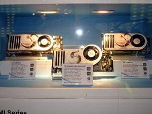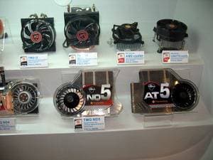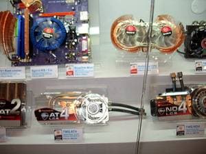 В заключении рассмотрения этого стенда надо показать и особую серию ускорителей, оснащенных особыми кулерами (сами устройства охлаждения, насколько нам стало известно, производства Coolermaster).