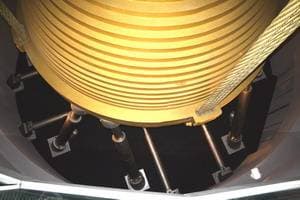 Для строительства башни был выкопан просто колоссальный котлован, опоры были прикреплены по сути уже к скалистому основанию острова, поэтому башня очень устойчива к землетрясениям, она движется вместе с основанием суши. А для того, чтобы верхняя часть башни не отставала и двигалась параллельно, там размещен особый механизм. О нем позже.