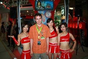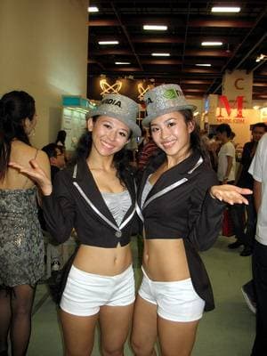 В продолжение разговора о девушках на выставке. Компания NVIDIA, не имеющая в этот раз своего отдельного большого стенда, устроила акцию по раздаче определенных карточек (у них это было названо как Покер). Подробно объяснять нет смысла, но суть в том, что надо собрать как можно больше карточек от каждого партнера NVIDIA с разными картинками. Для этой цели повсеместно были расставлены девушки, раздающие таковые всем желаюшим (к концу выставки у нас у каждого на шее болталось по внушительной колоде данных карточек). Разумеется, сия акция расчитана на китайцев с их скурпулезным хождением по всем партнерам в определенное время и сбору всех карточек с разными картинками. Нам, европейцам, конечно же, уже после собирания четвертого десятка карточек становится скучно, и мы бросаем это занятие (а только партнеров там штук 20, плюс у каждого картинок 10 видов).