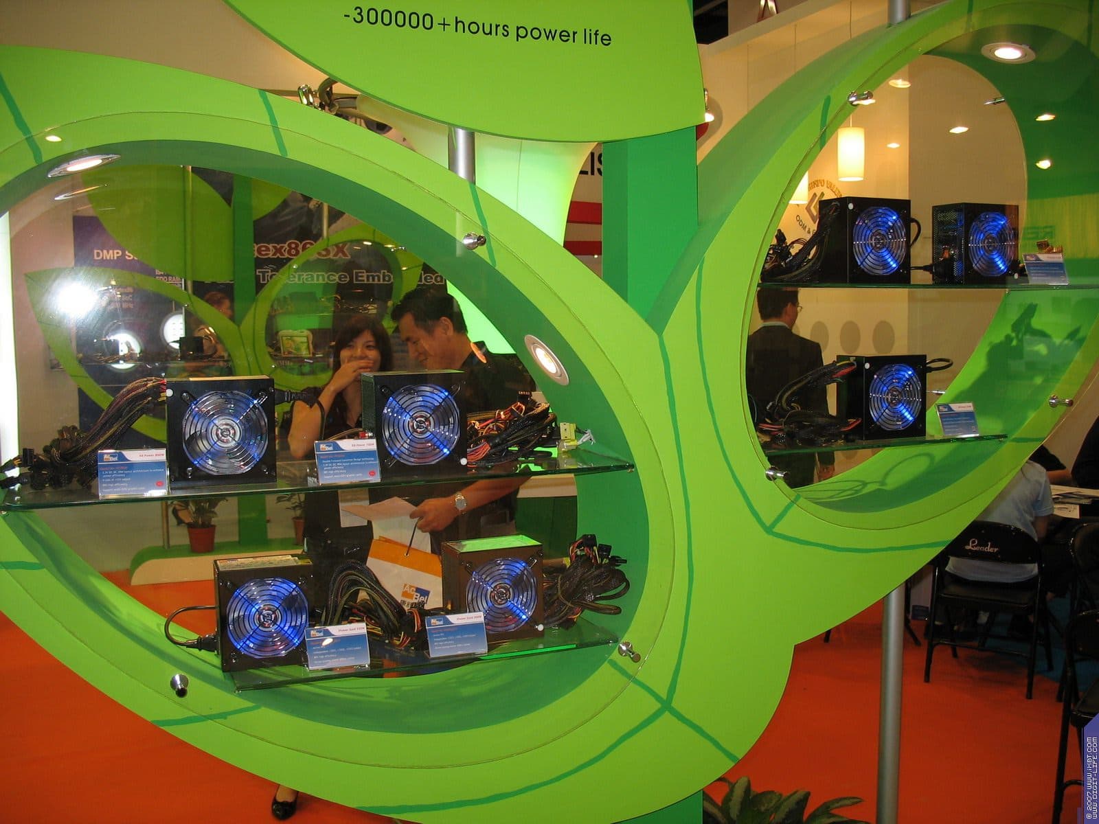 А вот соседняя компания Acbel Polytech, наоборот, сияла своими блоками питания, вернее кулерами в них. :)