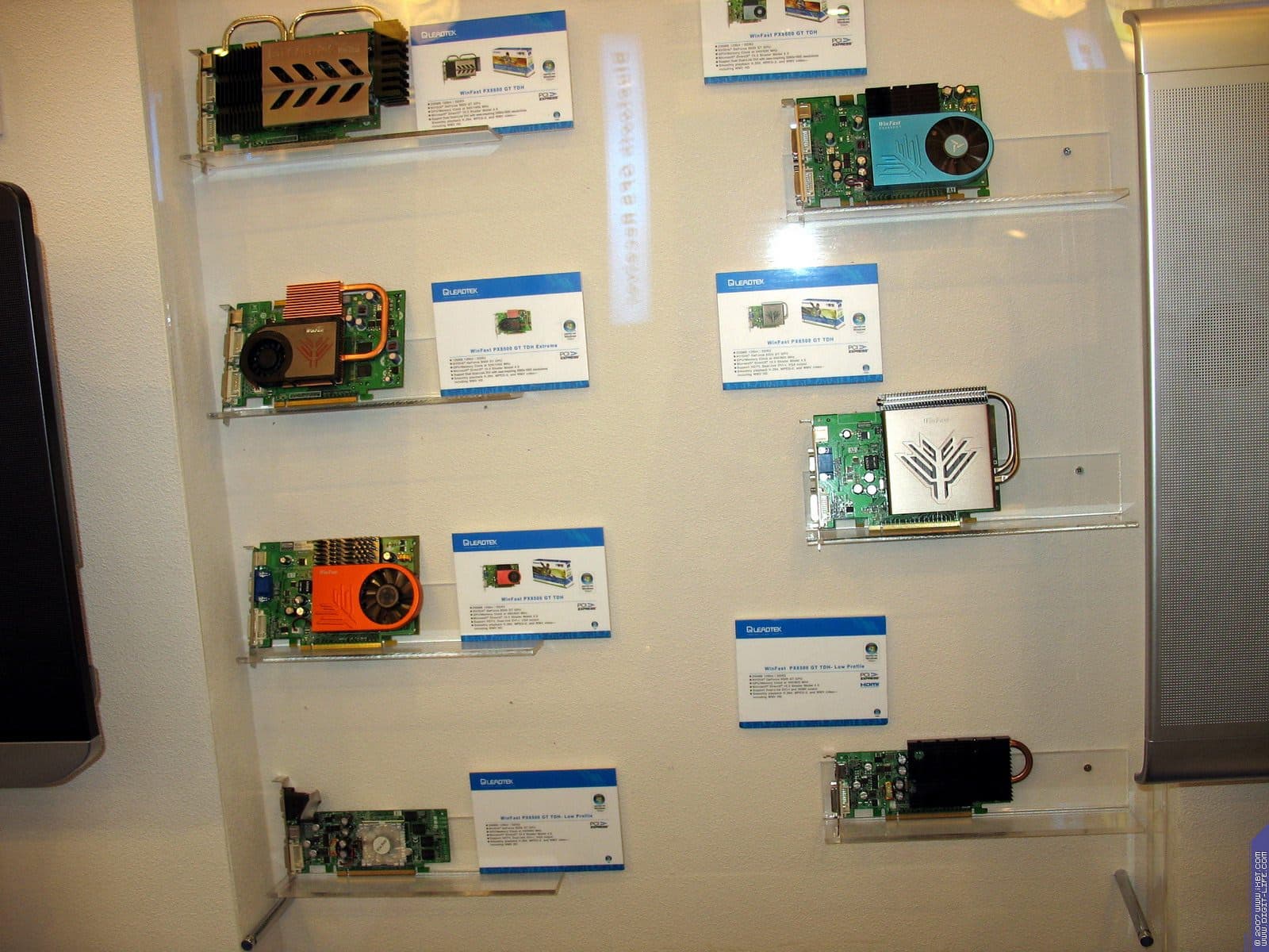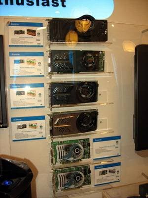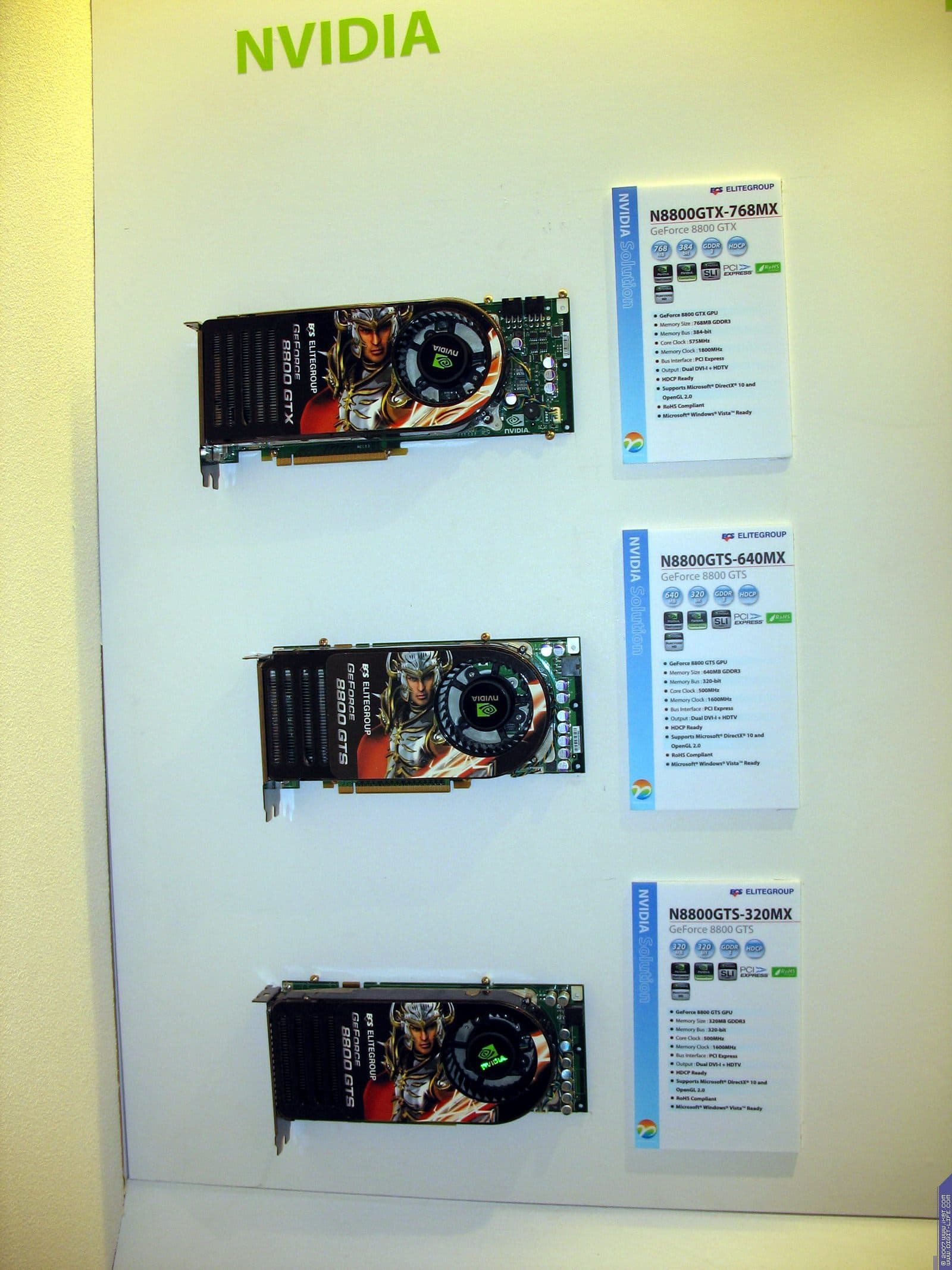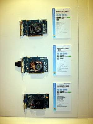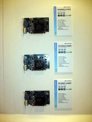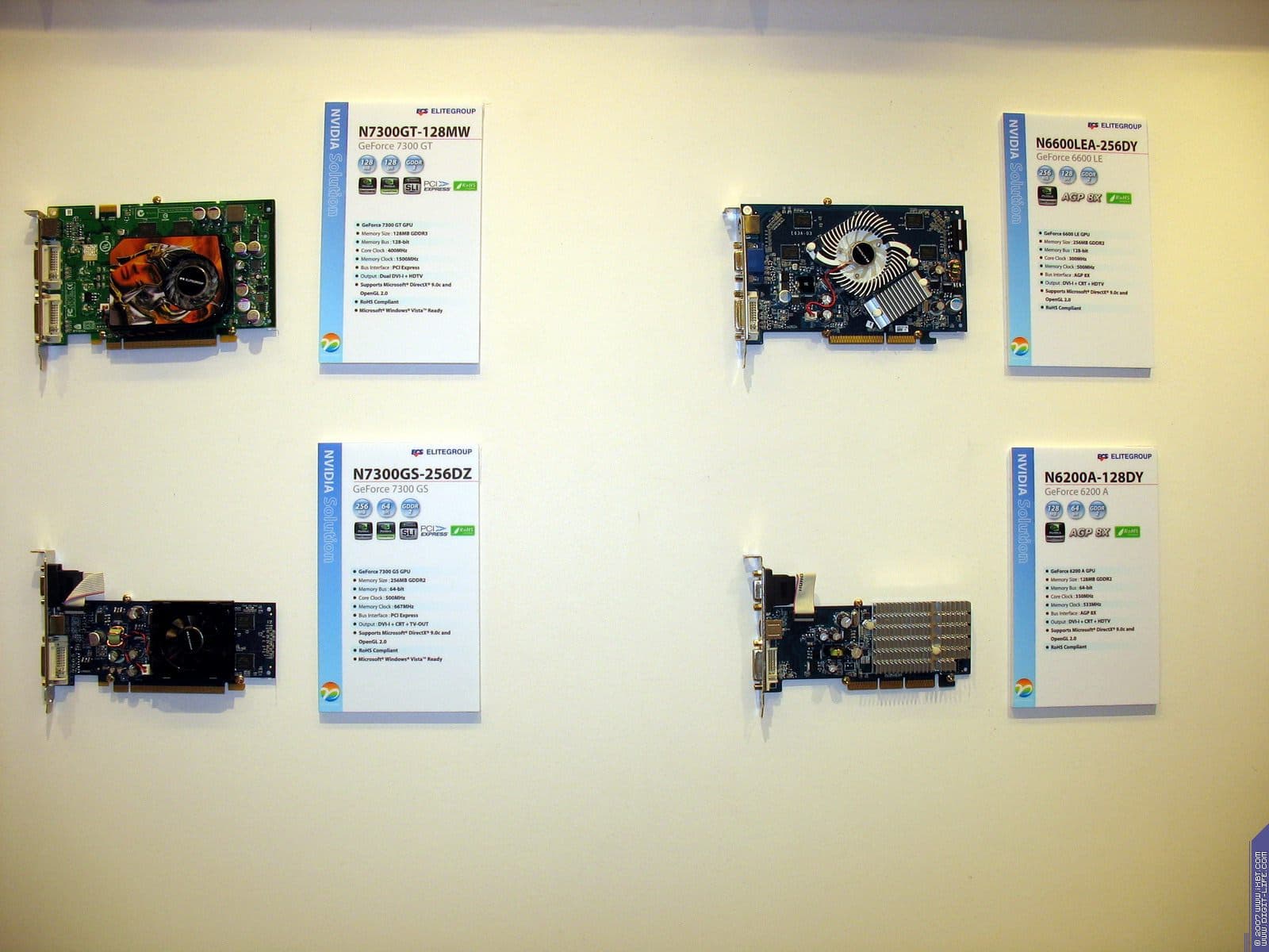 Год назад компания возобновила бизнес по выпуску видеокарт, пока они производятся на базе процессоров от NVIDIA. Представлены также практически все виды современных видеокарт на всех чипах калифорнийского производителя. Напоминаем еще раз, что Hi-End карты выпускает NVIDIA самостоятельно, и ECS, как и иные партнеры NVIDIA, покупают у последней уже готовые платы.