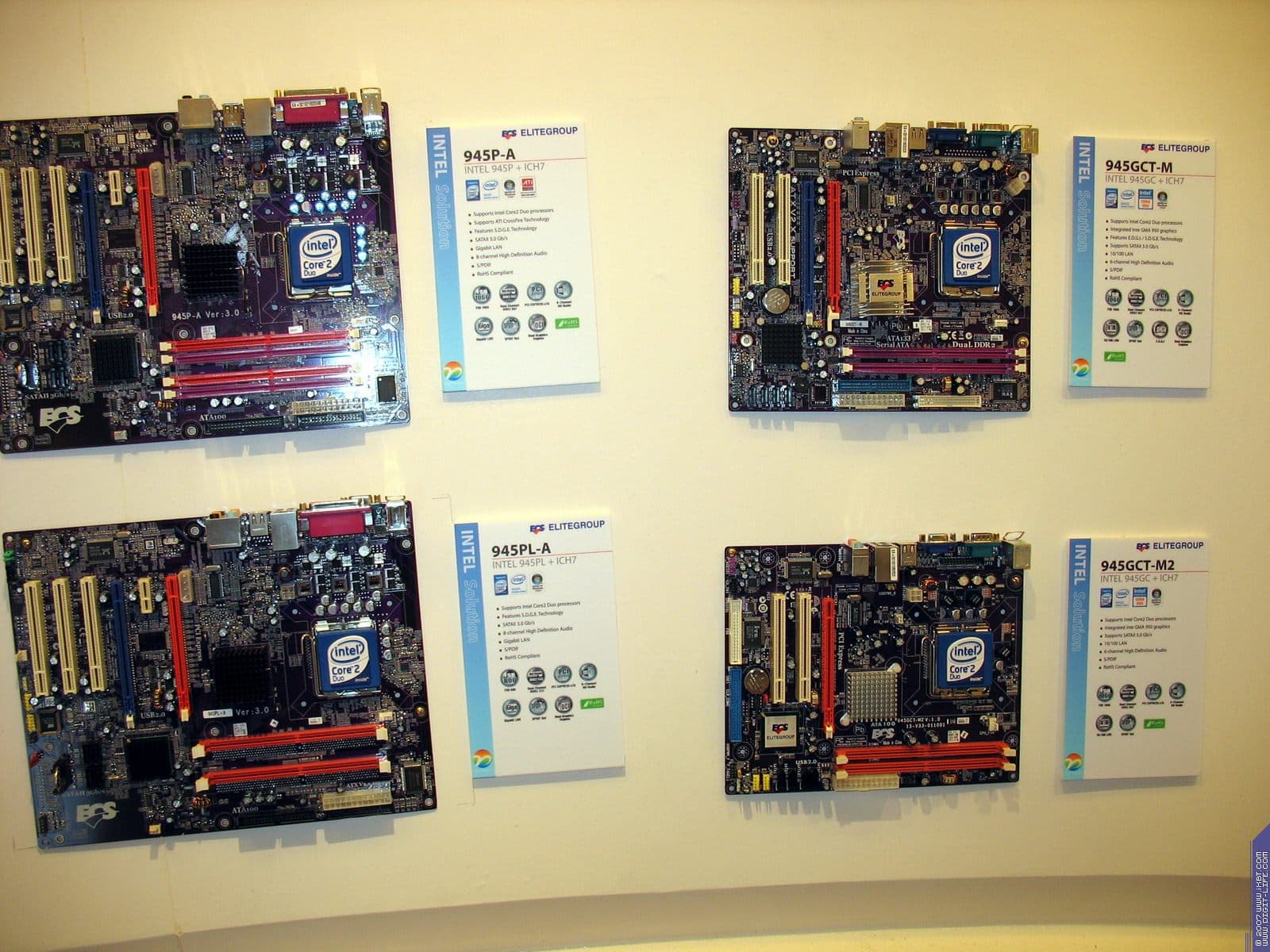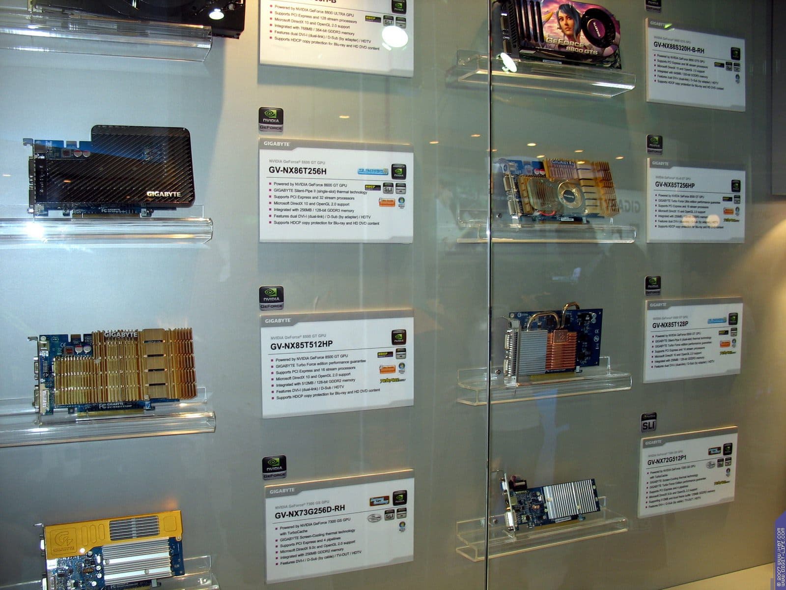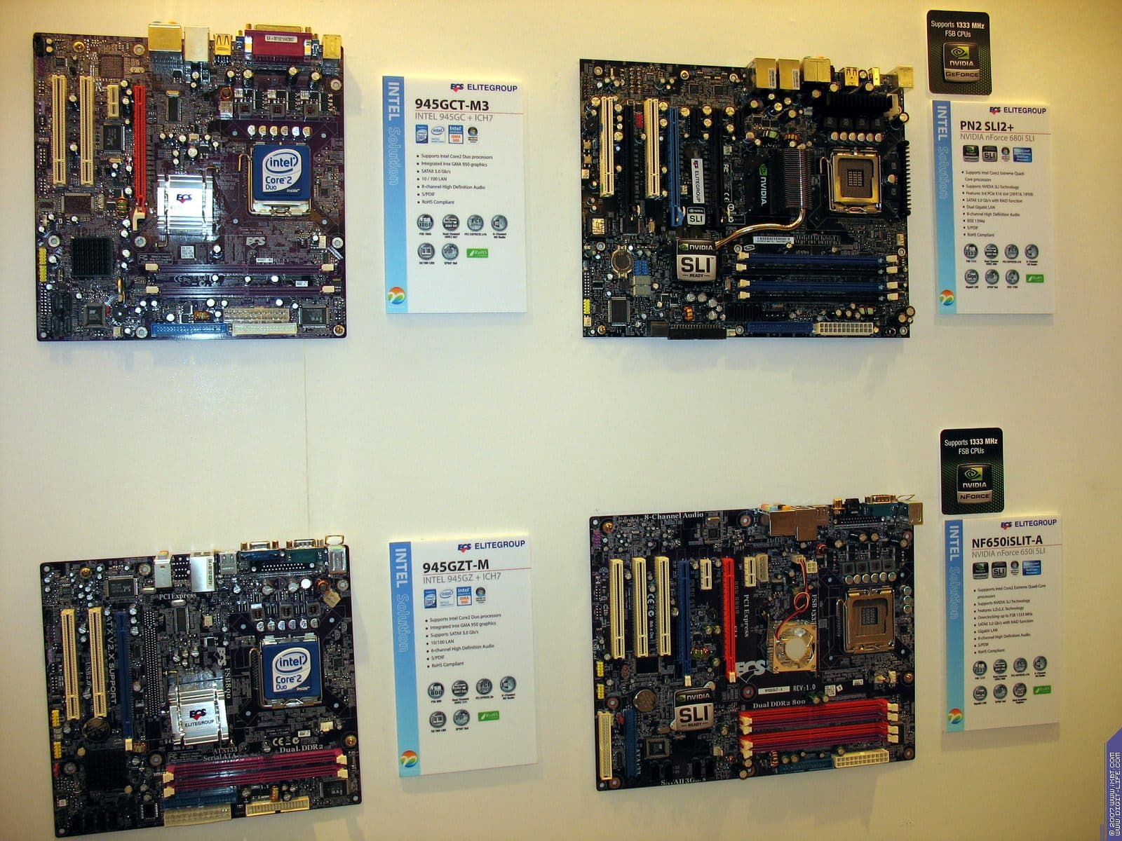 Год назад компания возобновила бизнес по выпуску видеокарт, пока они производятся на базе процессоров от NVIDIA. Представлены также практически все виды современных видеокарт на всех чипах калифорнийского производителя. Напоминаем еще раз, что Hi-End карты выпускает NVIDIA самостоятельно, и ECS, как и иные партнеры NVIDIA, покупают у последней уже готовые платы.
